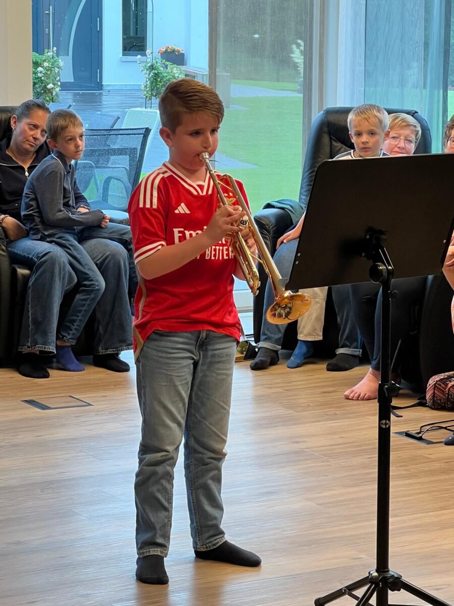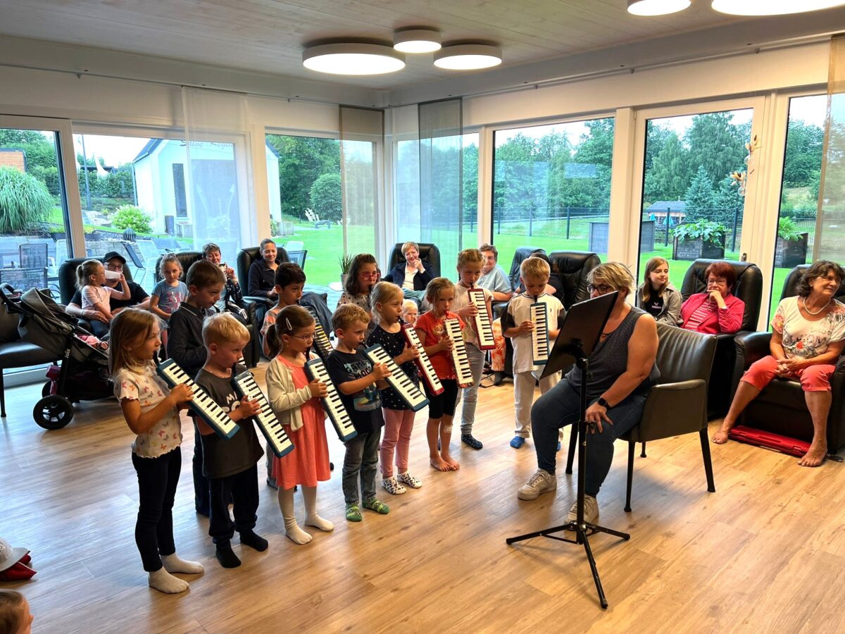Nicht nur die Gäste der Tagespflege waren von dem Nachmittag berührt: Auch Eltern, Geschwister und Großeltern der jungen Musikerinnen und Musiker waren erschienen. Besonders emotional wurde es, als ein Enkel eines Tagespflegegastes selbst als Musiker auf der Bühne stand.