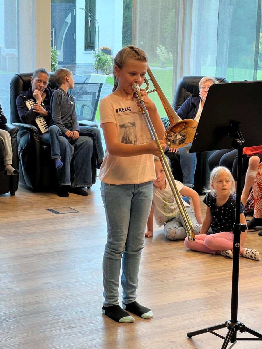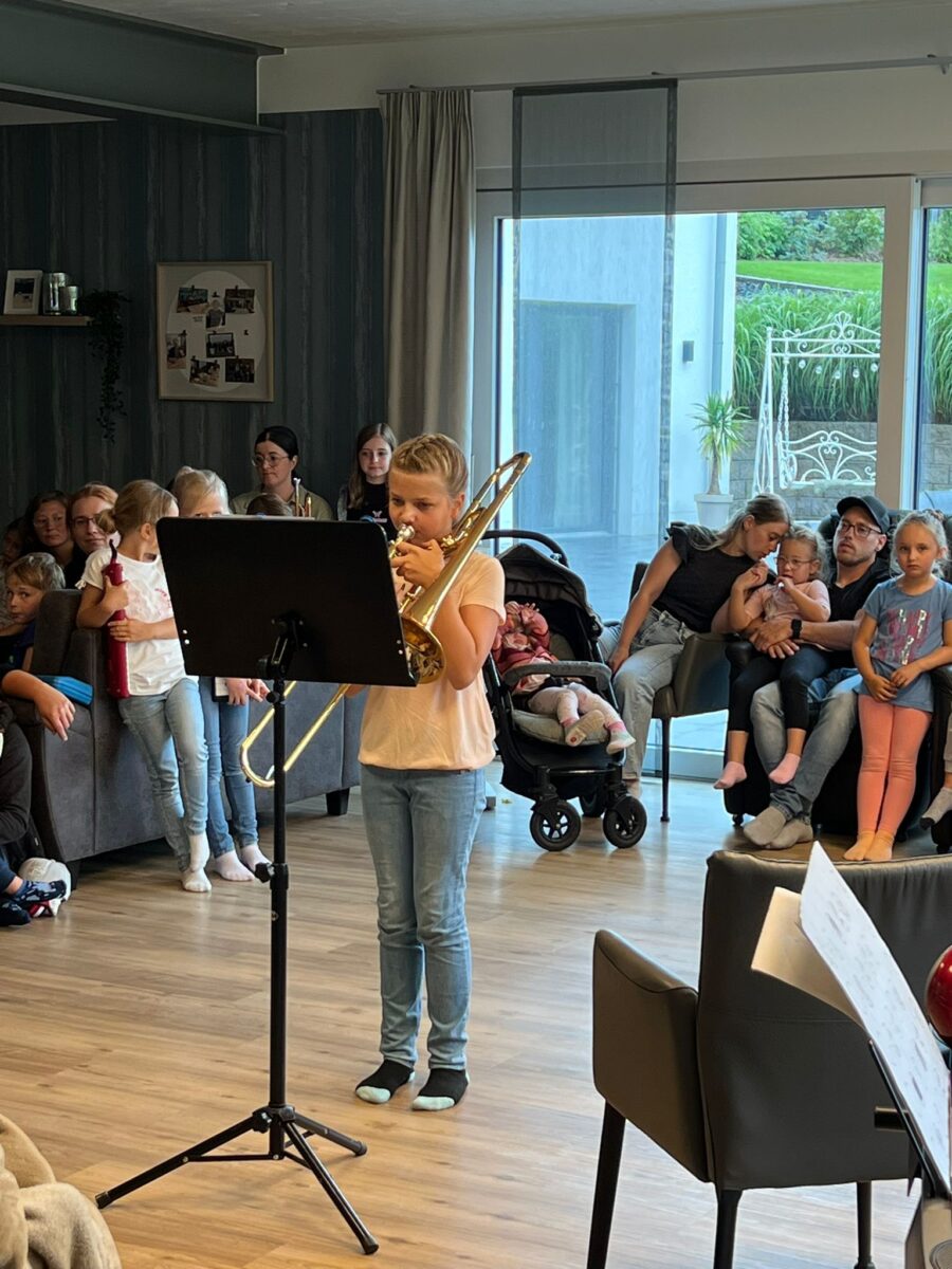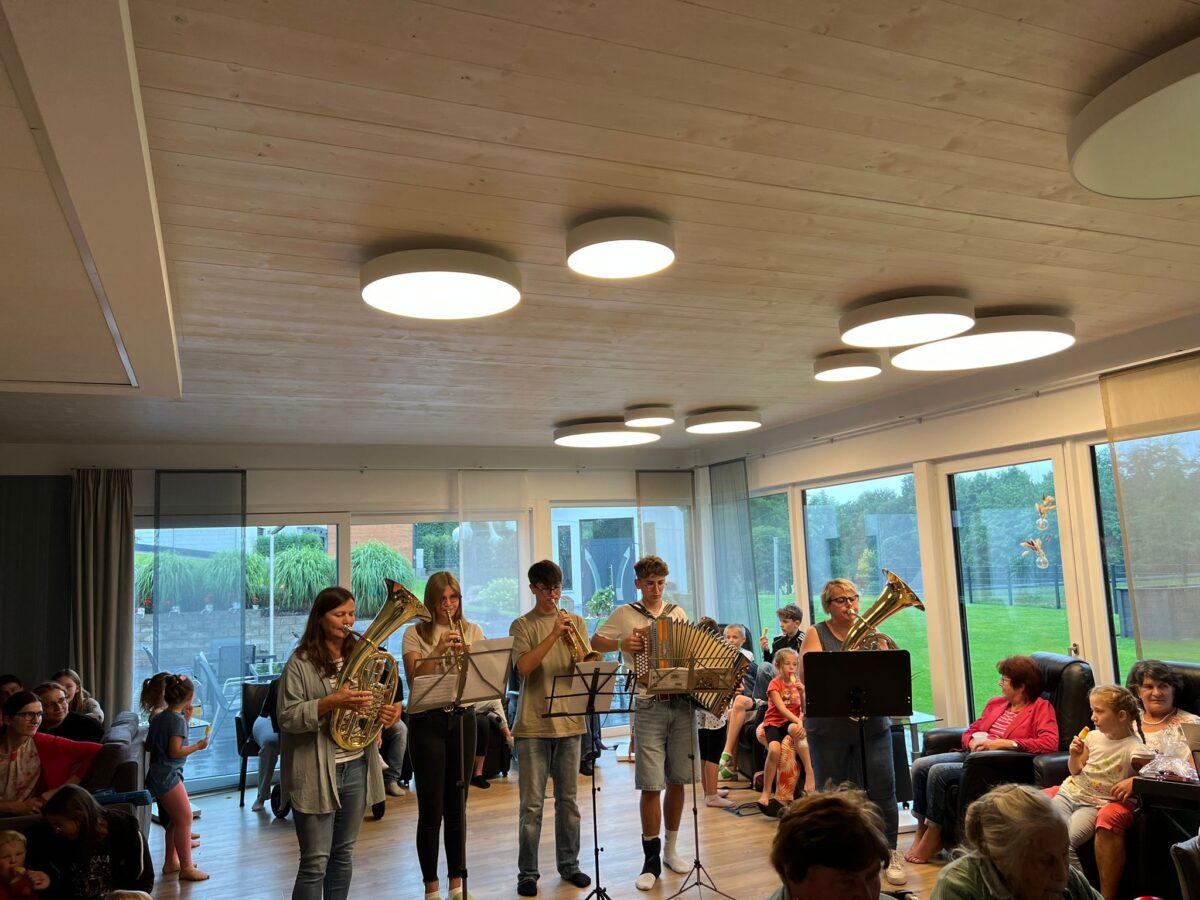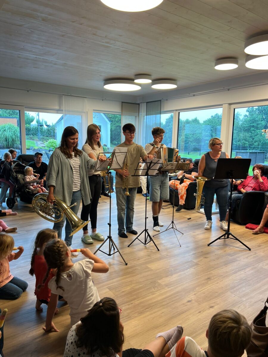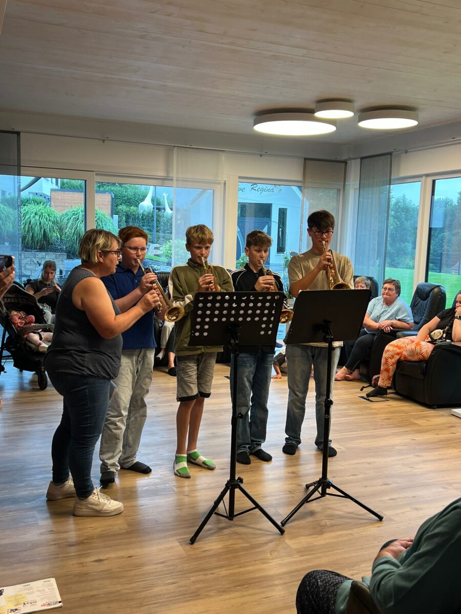 Unter der Leitung von Kornelia Kraus sorgten die jungen Musikerinnen und Musiker für große Begeisterung bei den Tagesgästen. Ursprünglich war das Konzert im Freien geplant – doch das unbeständige Wetter führte kurzfristig zur Verlegung ins Innere. Die Stimmung litt darunter jedoch keineswegs: Im Gegenteil, der familiäre Rahmen schuf eine besonders herzliche Atmosphäre.