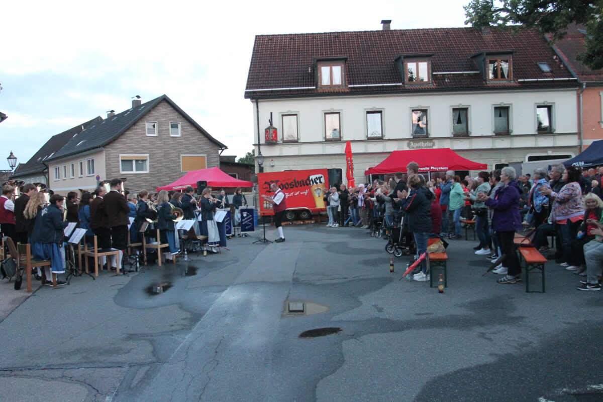 „Hält das Wetter?“ Das war am Freitag, 1. August, die Frage aller Fragen. Schließlich waren die Wetterprognosen alles andere als positiv. „Festwetter sieht anders aus“, wussten die Verantwortlichen um Bürgermeister Rainer Rewitzer und Thomas Wittmann als Vorsitzendem des Vereinskartells. Am Ende stand die Entscheidung: „Die Serenade findet statt.“ Gut so; denn zum Start um 19.30 Uhr war kein Regen in Sicht, als das Große Vereinsorchester des Musikvereins Waidhaus um Hermann Mack mit dem „Graf-Zeppelin-Marsch“ von Carl Teike den Startschuss gab. Perfekt war nicht nur das musikalische Angebot des Ensembles, sondern auch die Moderation von Andrea Lang. Die zweite Bürgermeisterin führte mit Charme durch das Programm und hatte zu jedem Stück die entsprechenden Informationen.
