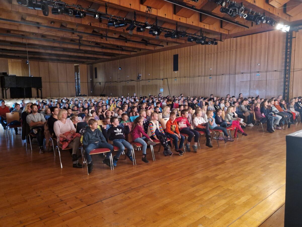 Was bedeutet Nachhaltigkeit? Und was hat das mit meiner Gesundheit und der Gesundheit unserer Erde zu tun? Rund 800 Kinder aus insgesamt neun Grundschulen der näheren Umgebung verfolgten gespannt die Abenteuer der Schülerin Henrietta und lernten dabei etwas über clevere Ideen für Klima und Umwelt. Nach dem Motto „Alles hängt mit Allem zusammen“ kann nämlich jeder etwas dafür tun, sich selbst, aber auch die Umwelt gesund zu erhalten. Ob Radfahren statt „Elterntaxi“, ob „Upcycling“ statt wegwerfen oder „weniger Fleisch“, jeder noch so kleine Schritt zählt.