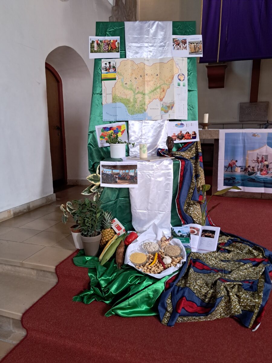 Im Anschluss waren alle Besucherinnen und Besucher ins Pfarrheim eingeladen. Bei landestypischen Speisen bot sich Gelegenheit zum Austausch und zur Begegnung. Pfarrvikar Dr. Linus steuerte zudem Spezialitäten aus seiner Heimat bei und zeigte eindrucksvolle Impressionen aus Nigeria, die den Teilnehmerinnen und Teilnehmern einen persönlichen Einblick in das Land des diesjährigen Weltgebetstags ermöglichten.