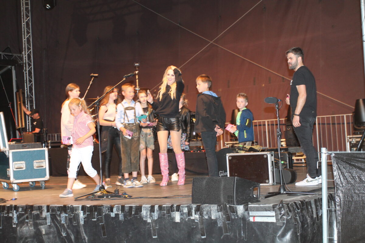 Natürlich lassen sich die Leute vor allem bei Melissas Erfolgstiteln mitreißen und zeigen sich auch textsicher. „I steh auf Bergbauernbuam“, gibt sie zu, und beim „Sensenmann“ schenkt ihr ein solcher auch ein Gänseblümchen, das er beim Mähen auf seinen Schuhen hat. Wer bei ihr landen will, muss übrigens einen „Traktorführerschein“ haben. „Ois, wos i wü, is a Bua mit am Gfühl und am Traktorführerschein“, gibt sie in ihrem prämierten Hit vor.