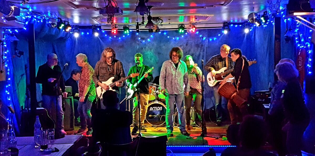 Der Abend startete mit der Band „Blue Haze“, die ein paar ihrer Songs als Warm up beisteuerte. Danach stießen dann als Erstes zwei Musikschüler von Günter Hagn dazu, um hier erste Bühnenluft zu schnuppern. Darum ging es schließlich bei diesem Event. Die Idee dahinter war nämlich die Verknüpfung kurzer Live-Auftritte von Bands, einer anschließenden Jam Session und einem Musikerstammtisch, an dem sich Musiker austauschen konnten. Vor allem aber möchte Mende Nachwuchsmusikern erste Aufritte ermöglichen.
