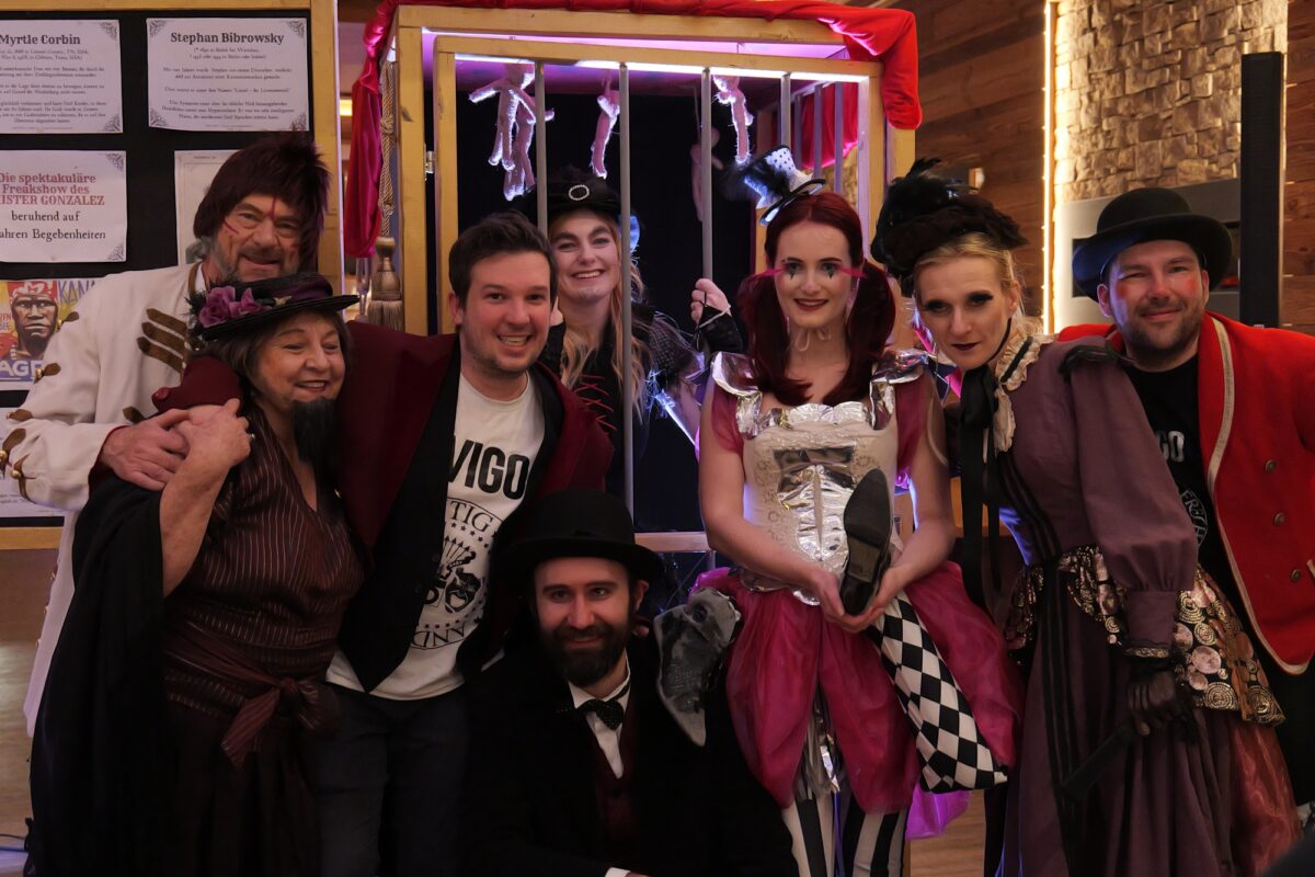 „Dinner mit Killer“ heißt das Krimidinner des OVIGO Theaters. Die Kulturmacher, die mittlerweile in der gesamten Oberpfalz unterwegs sind, haben drei höchst erfolgreiche Dinner-Events im Repertoire. Nach „Crashkurs für Liebeslieder“ und „Das Geheimnis der Blutgräfin“ hat OVIGO nun das Stück „Die spektakuläre Freakshow des Mister Gonzalez“ im Programm und kam damit am vergangenen Freitag (23. Januar 2026) in das Gasthaus zum Wulfen in Sulzbach-Rosenberg. Mit 113 Besuchern war der Gastraum restlos ausverkauft. Die Besucher zeigten sich begeistert. Das Krimi-Schauspiel wurde in ein Vier-Gänge-Menü eingebettet. Zusätzlich zu den Schauspielrollen des OVIGO Theaters wurden drei Zuschauer in das Geschehen eingebunden, die die Rollen der Jahrmarktswahrsagerin Lady Mystery, des Journalisten Hermann Teuber und des Gärtners Franz Wolfenstein ausfüllten.