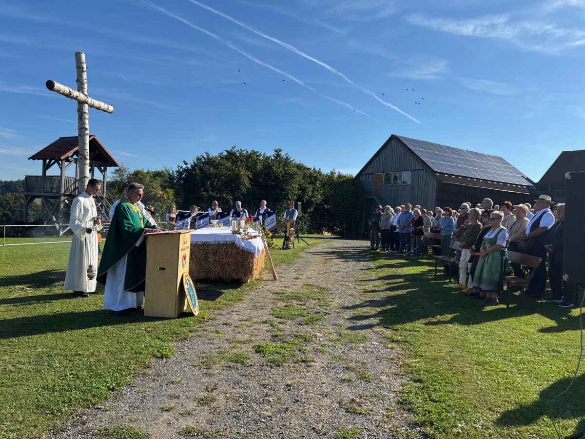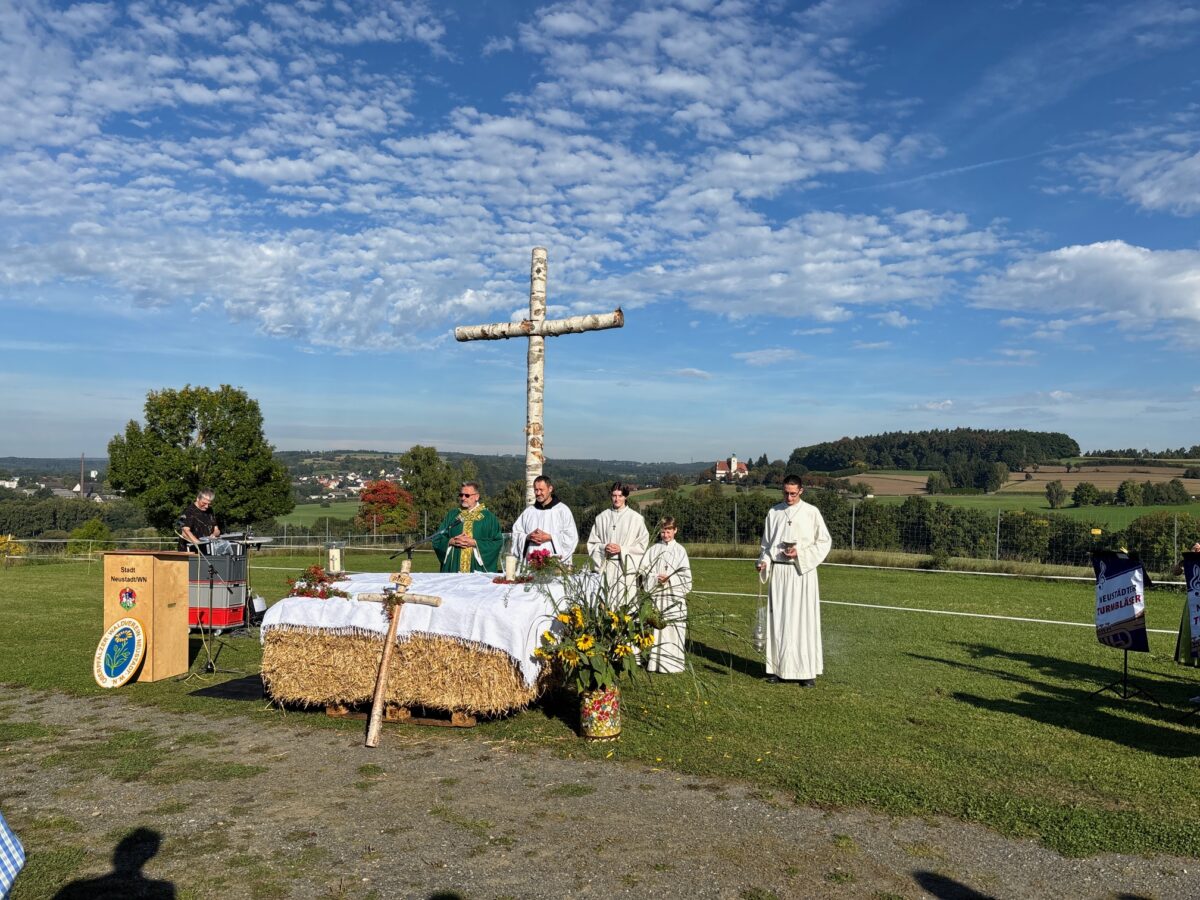 Zahlreiche Helfer mit den beiden Vorsitzenden Hans Spachtholz und Rudi Bäumler hatten alles bestens vorbereitet und zusammen mit der Familie Scheidler auch einen Altar aufgebaut. Bereits eine halbe Stunde vor Beginn des Gottesdienstes wurden die Plätze schon knapp. Die Männer der Feuerwehr Roschau hatten alle Hände voll zu tun, um den vielen Kirchenbesuchern entsprechende Parkplätze zuzuteilen.