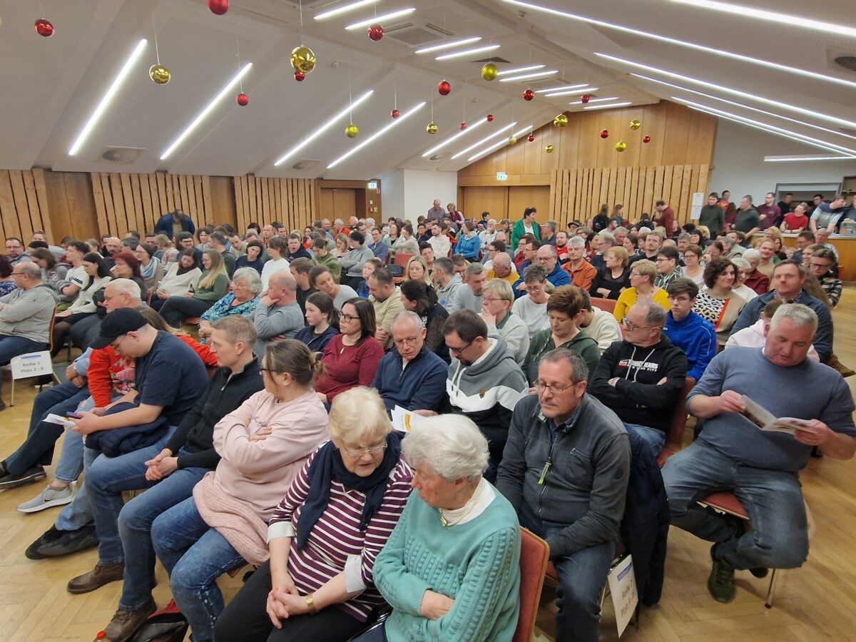 Die Lichter im Gemeindesaal wurden dunkel, der Bühnenvorhang öffnete sich und ließ einen Blick auf den Bahnhofsvorplatz zu. Hier entwickelte sich das Stück zu viel Dynamik, Beständigkeit und Redefluss der Spieler, der oft im Nervenchaos mündete. Die Stimme des Lautsprechers verkündete: Triebwerksschaden auf offener Strecke, aber nahe dem Bahnhof. “Klar, typisch Bundesbahn”, meinte der abgedrehte Motivationsredner Jonas Funk (Sigi), der zum ersten Mal auf der Bühne stand. Für die Zuschauer war es wichtig, vorbereitet auf dieses fulminante Bahnabenteuer zu sein.