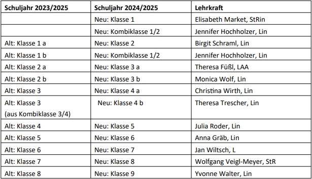 Im neuen Schuljahr gibt es einige Änderungen bei den Klasseneinteilungen und den zugeordneten Lehrkräften. So übernimmt Elisabeth Market die erste Klasse, während Jennifer Hochholzer eine Kombiklasse aus 1. und 2. Klasse leitet. Die Zuweisung der weiteren Klassen reicht bis zur 9. Klasse, wobei alle Änderungen bereits den Eltern übermittelt wurden. Zusätzlich zum regulären Lehrpersonal werden auch Förderlehrer und -lehrerinnen sowie Fachlehrkräfte und Religionslehrer das Schulteam unterstützen.