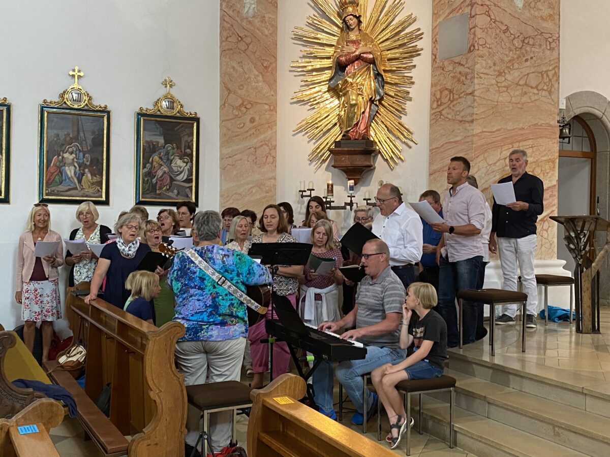Mit vier Kleinbussen machte sich der aus vier sozialen Einrichtungen bestehende Mitarbeiterchor „PiMabriMA“ aus Abensberg in der Hallertau beim diesjährigen Chorausflug auf nach Tännesberg. Vom fünfundvierzig Mitglieder starken Klangkörper, von dem auch einige Tännbesberger Wurzeln haben, gestalteten dreißig den Sonntagsgottesdienst mit einer rhythmischen Messe, die so die zahlreichen Kirchenbesucher noch nicht gehört haben.