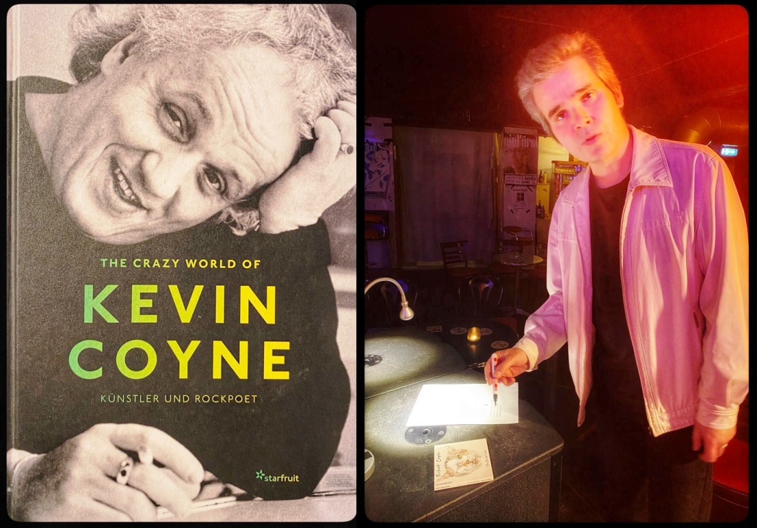 Dieses Wispern des Lebens performt Robert Coyne gemeinsam mit dem Drummer Werner Steinhauser – einem in Nürnberg lebenden Musik-Profi und Studiobesitzer, der, als Vater Kevin irgendwann nach einer Odyssee in der mittelfränkischen Metropole gelandet war, Mitte der 1980er Jahre, mit ihm eine Reihe von Platten aufnahm. Musikjournalist Steffen Radlmeier hat dem 2004 verstorbenen Künstler und Rockpoeten Kevin Coyne eine Biographie (The Crazy World of Kevin Coyne, 380 Seiten stark, erschienen bei Starfruit, 28 Euro) gewidmet.