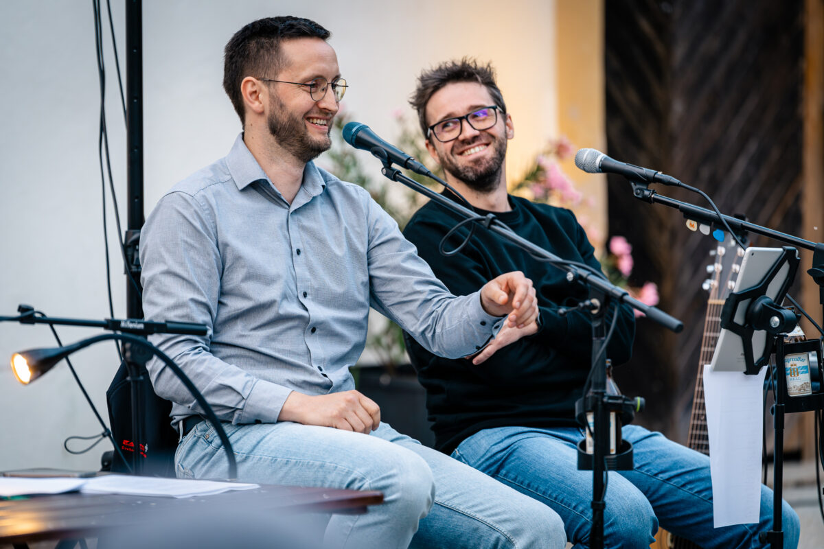 Begleitet wurden die Erzählungen von Musik von “The Couch Acoustics”. Thomas Kneidl aus Kastl und Frank Unterburger aus Fichtelberg begeisterten erneut mit ihrem unverwechselbaren Gitarrensound. Als die ersten Akkorde von Tracy Chapman erklangen, breitete sich eine andächtige Stille unter den Zuhörern aus. Die Gäste schlossen die Augen und ließen sich von der Musik tragen, während die Melodien von ABBA, Johnny Cash, STS oder den Beatles Erinnerungen an vergangene Zeiten wachriefen.