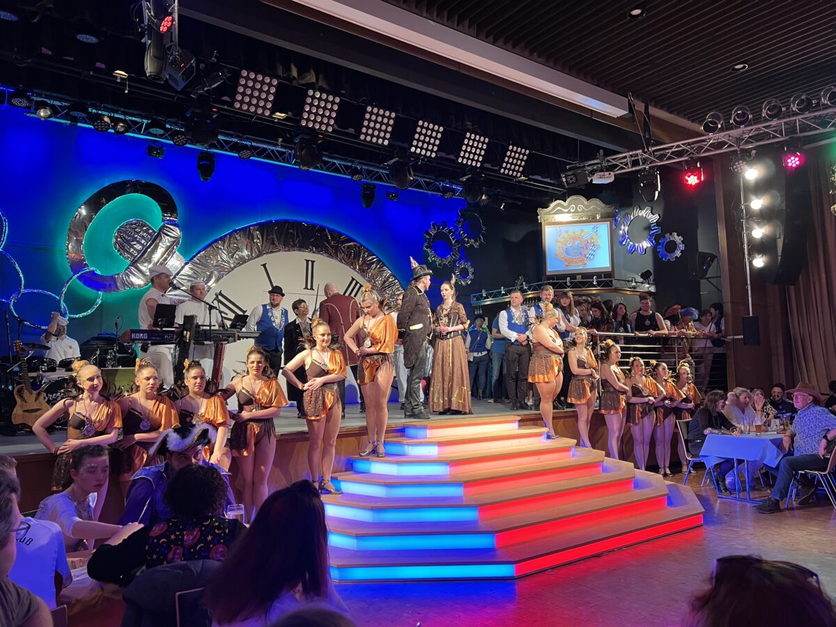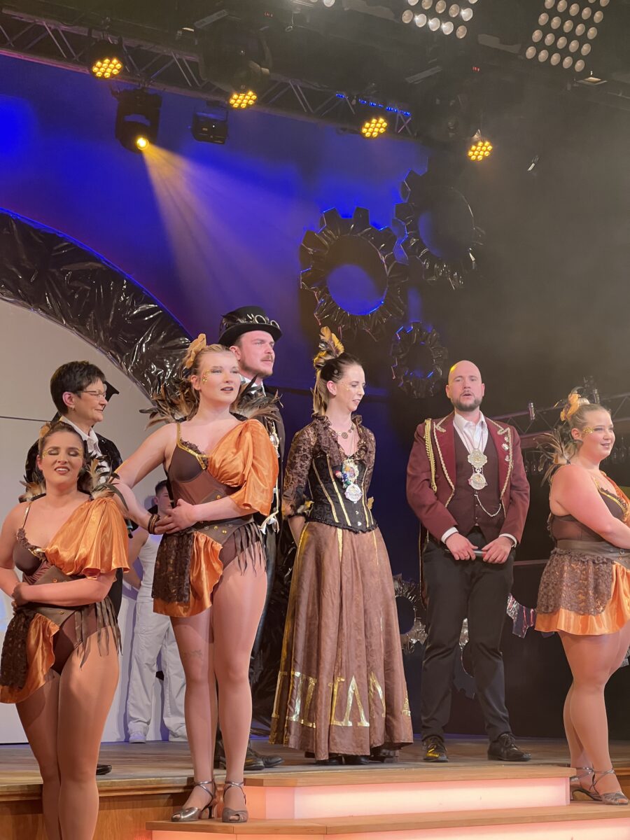 Ab 20 Uhr war die Tanzfläche eröffnet. Von Beginn an sorgte die Band “Breznsalzer” für Stimmung. Neben Faschingsliedern wurden zahlreiche Klassiker gespielt. Die Band hatte es geschafft, dass bereits von Beginn an die Tanzfläche gut gefüllt war. Fast stündlich gab es Showeinlagen der Garde, des Prinzenpaares und der Show-Gruppen. Schon um 20:30 Uhr kam es zur ersten Kür. Die Garde begrüßte mit dem diesjährigen Motto “Tik Tok around the clock” die Gäste. Neben aufregenden Kostümen stand stets die Uhr im Fokus der jeweiligen Tänze.