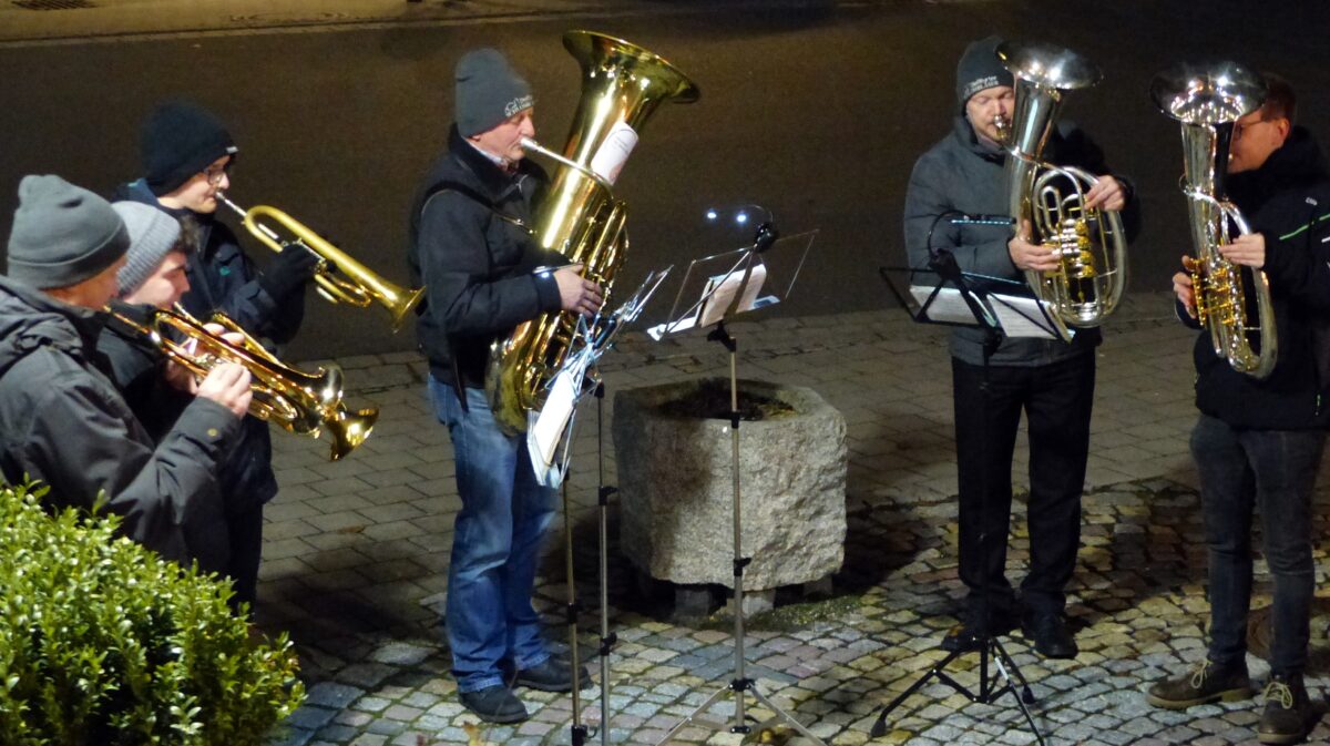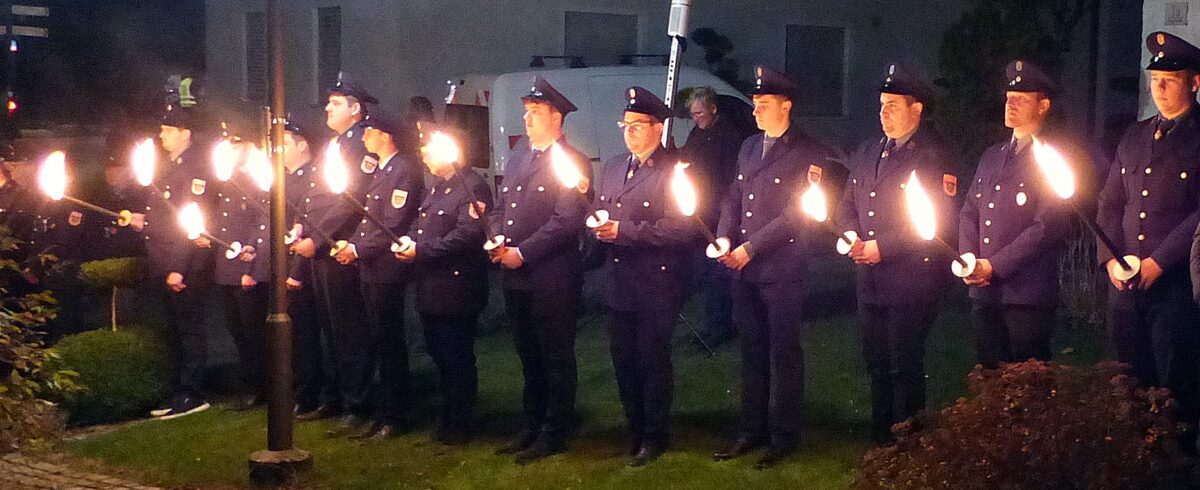 Eine Bläsergruppe der Musikkapelle Dießfurt sorgte für eine eindrucksvolle musikalische Begleitung des Gottesdienstes und der anschließenden Gedenkfeier. Die feierliche Atmosphäre wurde durch ein Fackelspalier der Freiwilligen Feuerwehr zusätzlich unterstrichen.