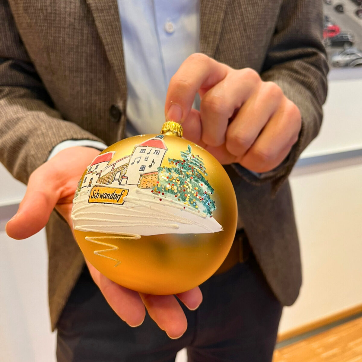 Schwandorfer Christbaumkugel. Bereits im Jahr 2024 gab es die mundgeblasenen