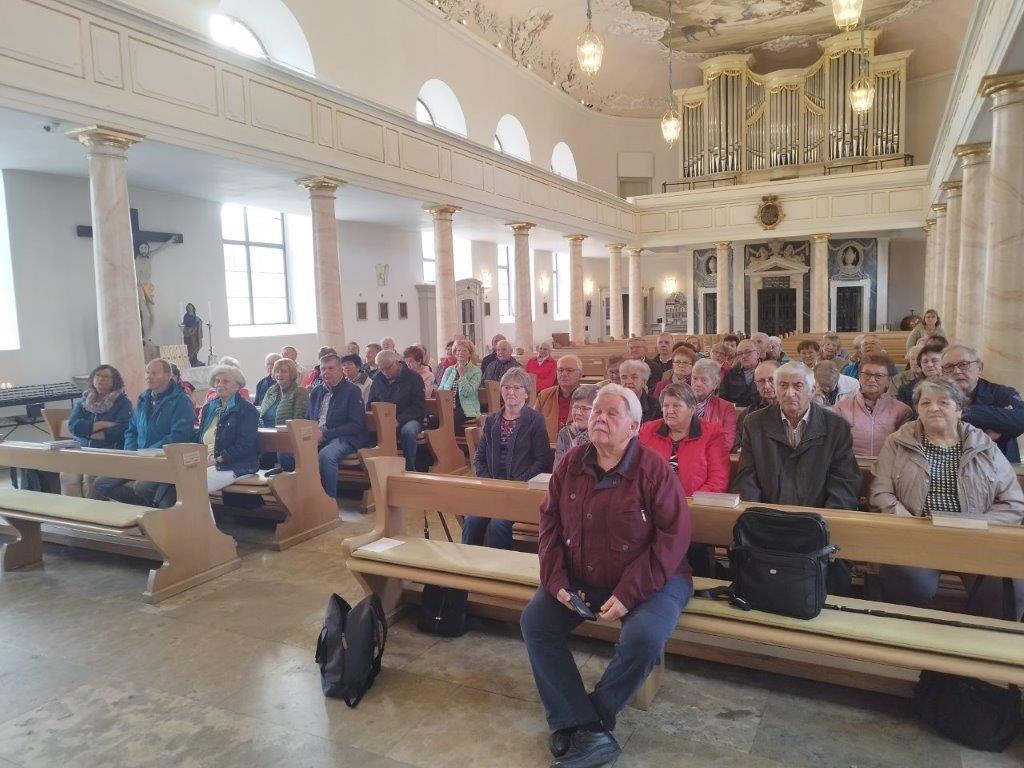 Erstes Ziel war die Schlosskirche mit einer Messerfeier durch Pfarrer Adrian. Als einzige katholische Markgrafenkirche ist sie Maria geweiht. Anschließend fand eine kleine Führung statt.