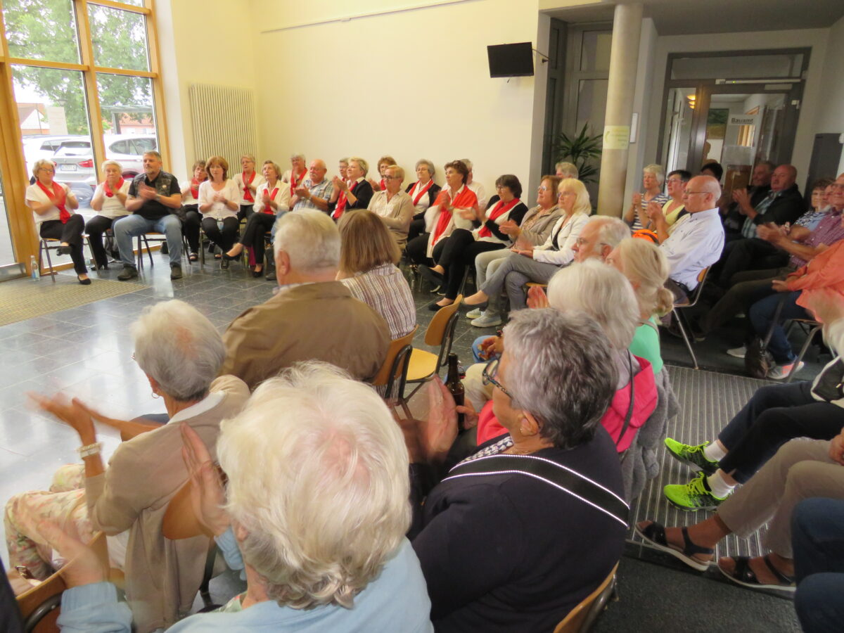 Im schwungvollen zweiten Teil des Abends präsentierte die Neistedter Zoiglmusik Wirtshaus- und Volkslieder, auch zum Mitsingen. Reinhold Dobner mit der Gitarre, Franz Harrer mit der Steirischen und Uli Ertl am Bass spielten lustig und unterhaltsam auf und brachten Zoiglflair in das Foyer des Rathauses. Mit viel Beifall belohnten die Besucher die Darbietungen der unterschiedlichen Musikgruppen mit viel Beifall.