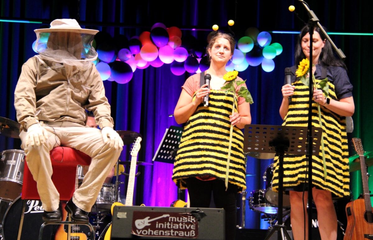 Zu lösen gilt es auch das Rätsel um den „Masked Teacher“. Wer wird wohl die Stimme unter dem Imkerkostüm gehören, der begleitet von zwei Bienen „Another love“ von Tom Odell sang? Wer wollte, konnte schriftlich seinen Tipp abgeben. Auflösung folgt demnächst.