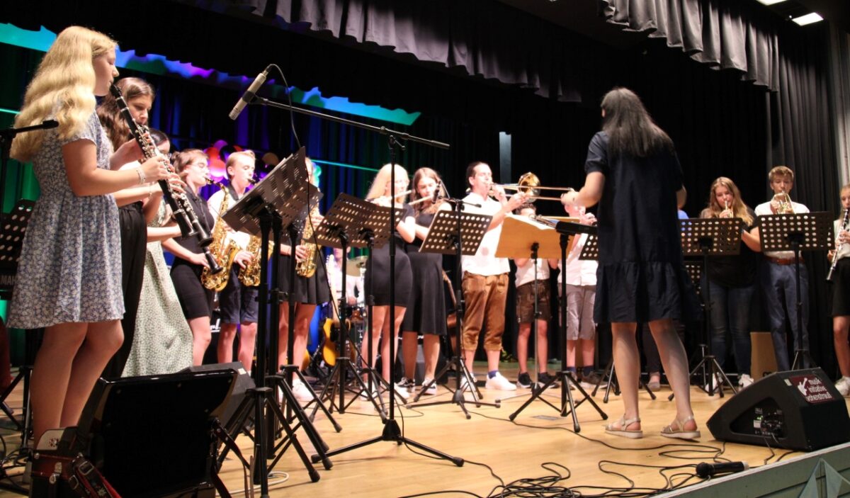 Schulleiterin Irene Sebald zeigte sich am Ende begeistert vom „fantastischen Sommerkonzert“ und dankte allen Mitwirkenden. Den Schlusspunkt unter ein begeisterndes Konzert setzten am Ende alle Talentklassen mit dem Hit „YMCA“. Freiwillige Spenden werden für die Anschaffung von Monitoren für die Musiker verwendet. In der Pause zwischen den beiden Konzerten servierte „Hunters Rauchmaschine“ Grillspezialitäten im Pausenhof.