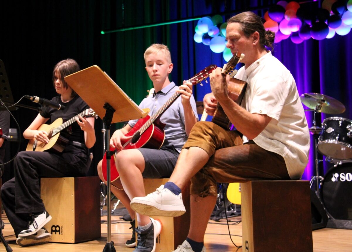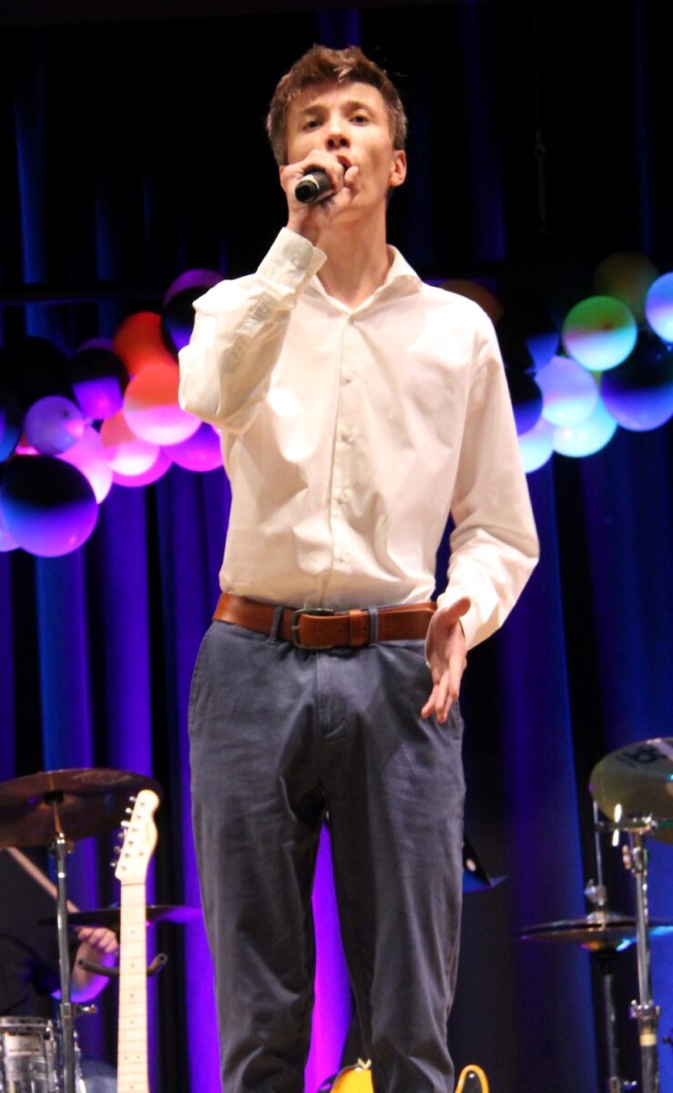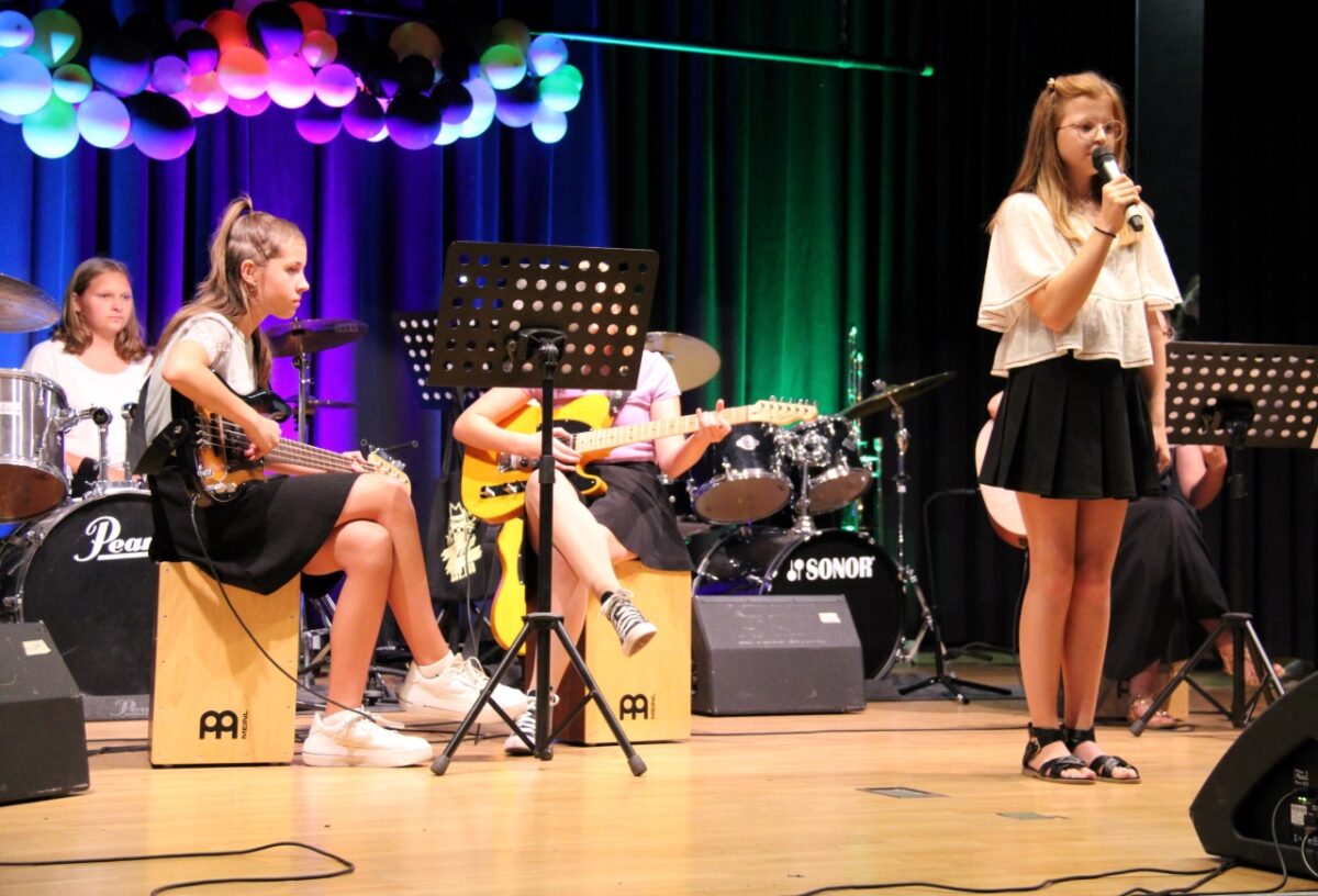 Die Big Band der Schule legte mit dem Hit der Blues Brothers „Everybody needs somebody“ und dem Bon-Jovi-Klassiker „Livin‘ on a prayer“ gleich furios los. Moderiert wurde das Konzert von Sara Roderer und Lilia Schuchart. In verschiedenen Formationen brachten sich die unterschiedlichen Talentgruppen Musik ein. Die Talentgruppe Gitarre interpretierte den Frühling aus „Die vier Jahreszeiten“ von Antonio Vivaldi und die Bandklasse besang „Sofia“ auf Spanisch.