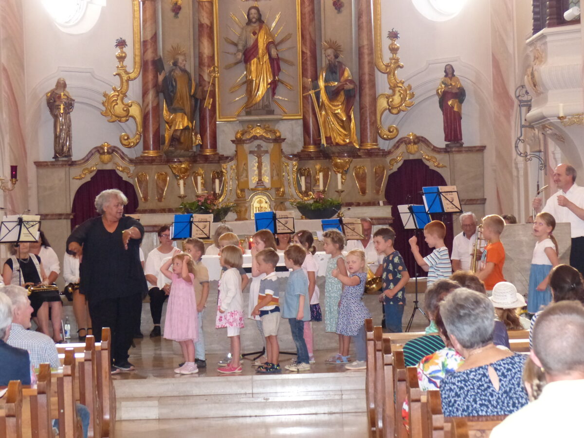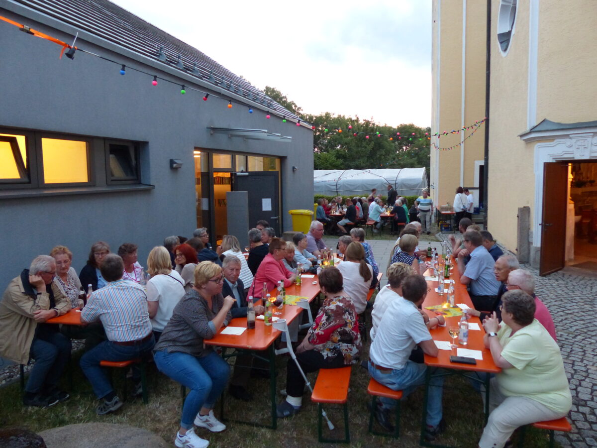 Es folgte noch ein gemütlicher Teil im Garten des katholischen Pfarrheimes. Fleißige Hände hatten eine reiche Auswahl ab Fingerfood vorbereitet, dazu gab es verschiedene Getränke. Der Pfarrhof hatte sich bis auf den letzten Platz gefüllt. Gemütlich bei lockeren Gesprächen verbrachte man einen lauen Sommerabend im Schatten der Kirche.