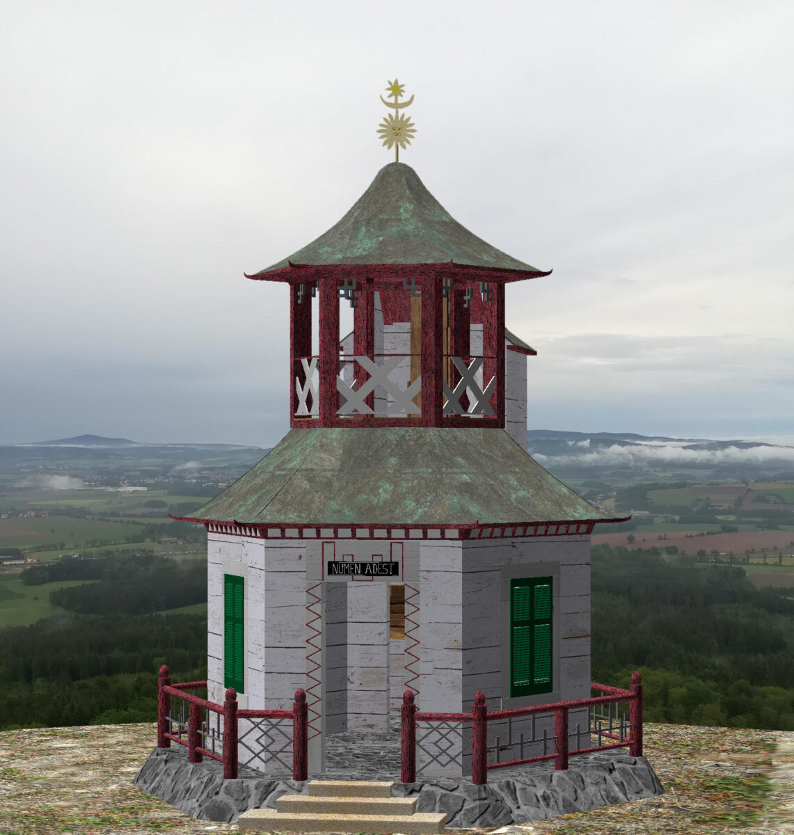 Bernhard Weigl: Der Turm war mir aus literarischen Beschreibungen schon bekannt. Der Erbauer Johann Nicolaus Apel gab selbst 1811 ein Buch über den Rauhen Kulm heraus. Dabei beschrieb er auch den 1807 von ihm erbauten Turm recht gut. Er selbst taufte das Bauwerk „Sonnentempel“. An der Turmspitze gab es als Windfahne eine große vergoldete Sonne. Eine virtuelle Rekonstruktion wäre damit alleine aber nicht möglich gewesen.