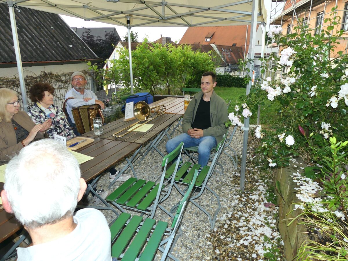 Im Gegensatz zu einigen potenziellen Zuhörern ließen sie sich auch nicht von der (am Ende nicht eintreffenden) Gewitterprognose und dem kleinen Regenschauer kurz vor Beginn davon abhalten, wieder ihre Vielfalt zur Schau zu stellen. Unter den Gästen befand sich wie so oft auch Altlandrat Hans Schuierer. Zu Beginn gab es ein besonderes Gedenken an den im März verstorbenen Alfons Treu, der seit der Gründung im Oktober 1996 Mitglied der Gruppe war und vor zwei Jahren auch am Blasturm mitgewirkt hat.