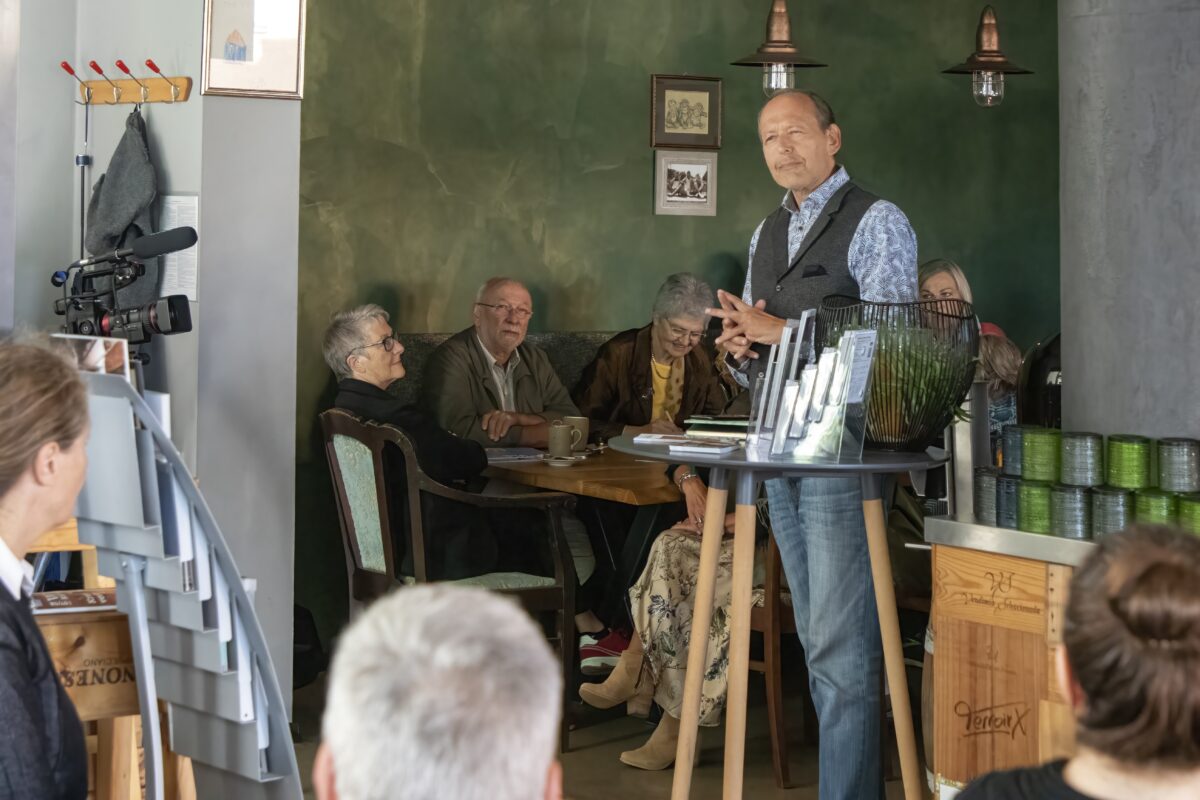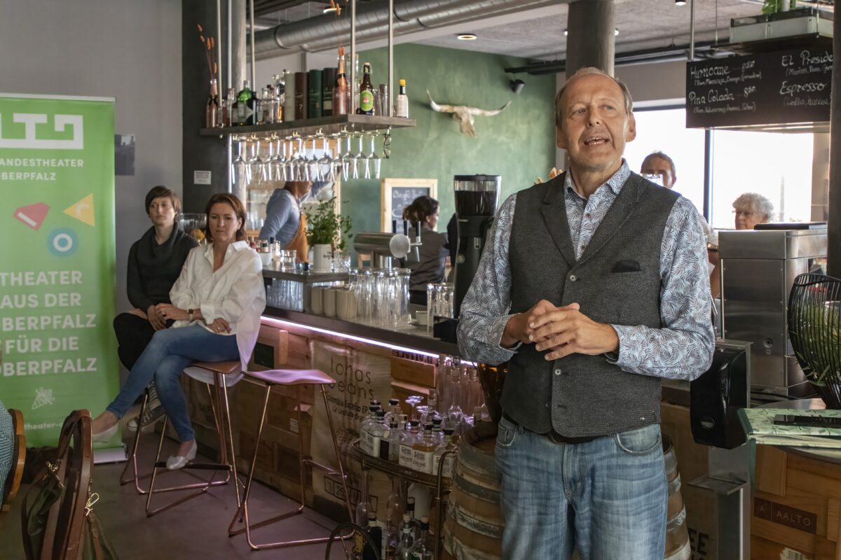 Eine weitere für die zweite Vohenstraußer Premiere, „Doppelt leben hält besser – Taxi, Taxi“ findet am 22. Oktober um 11 Uhr ebenfalls im Restaurant Friedrich statt. Schnell beschließt nach rund eineinhalb Stunden den gelungenen Vormittag und lädt ein: „Zu beiden Premieren werden hier auch die Premierenfeiern stattfinden. Es gibt noch den einen oder anderen Platz. Es ist ja so: der geneigte Oberpfälzer, der muss ja erst mal überzeugt werden, dass etwas gut ist. Da muss erstmal die Nachbarin drin sitzen und sagen, das kannst du machen, da kannst du reingehen! Ich verspreche Ihnen: nach diesem Abend hier kommen Sie alle. Kommen Sie zur Premiere, jubeln Sie. Haben Sie Spaß, haben Sie Gänsehaut, seien Sie betroffen. Sie werden das Taschentuch auf alle Fälle brauchen!“