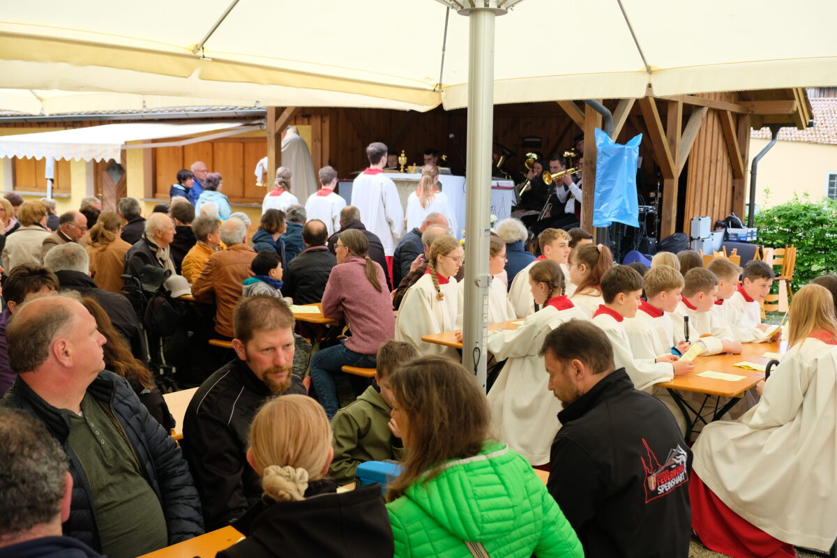 Die gute Stimmung konnten auch einige Regentropfen nicht trüben. Biwara war am Sonntag mit Gläubigen gut gefüllt. Bis zu 500 Besucher mögen es gewesen sein, um im Alten Schulhof bei einem Festgottesdienst, bei Frühschoppen, bei Schweinsbraten, Bratwürsten und Gerstensaft, bei Kaffee und Kuchen zusammenzurücken.