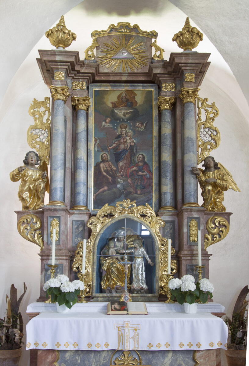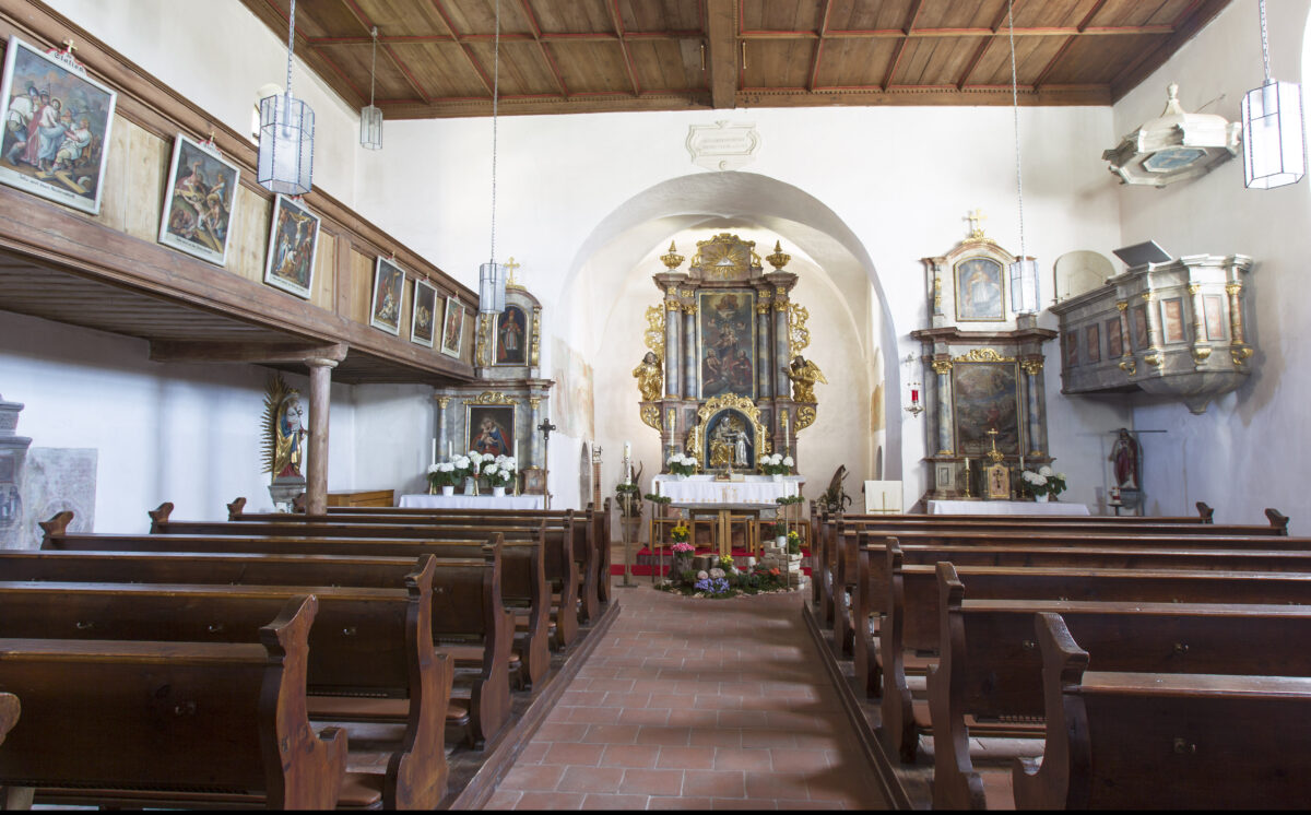 Besonders an dieser Kirche ist, dass sie in ihrer Ursprünglichkeit des 17. / 18. Jahrhunderts erhalten ist: mit der Holzfelderdecke, dem Ziegelboden, der gegliederten Emporenbrüstung und der Ausstattung. Auch der Hauptaltar mit den vier Säulen und dem Altarblatt mit der Muttergottes stammt aus der Zeit um 1720.