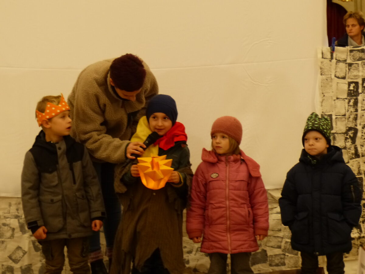 Auch der Elternbeirat hatte sich mächtig ins Zeug gelegt, damit der Abend ein Erfolg wird. Die viele Arbeit von beiden Seiten hat sich gelohnt. Bemerkenswert war schon der sehr gute Besuch in der Kath. Kirche Herz Jesu. Die Kindergartenkinder gestalteten die Feier aktiv mit, unterstützt vom Posaunenchor. Ob Lieder oder Fürbitten, die kleinen Kirchenbesucher waren stets dabei. Die Geschichte des St. Martins wurde als Schattenspiel vorgeführt.