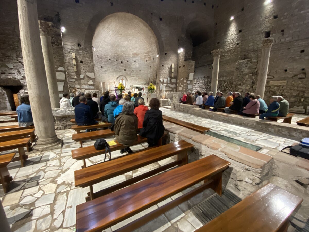 Wie in frühchristlicher Zeit die Verstorbenen beerdigt wurden konnte man am nächsten Tag in der „Catacombe Domitilla“ erfahren. Dort wurde auch gemeinsam Gottesdienst gefeiert. Weiter ging es in die Albaner Berge zum Castell Gandolfo, dem Sommersitz des Papstes. Nach einer Rundfahrt um den Albaner See war es Zeit zum Abendessen in der bekannten Weinstadt Frascati.