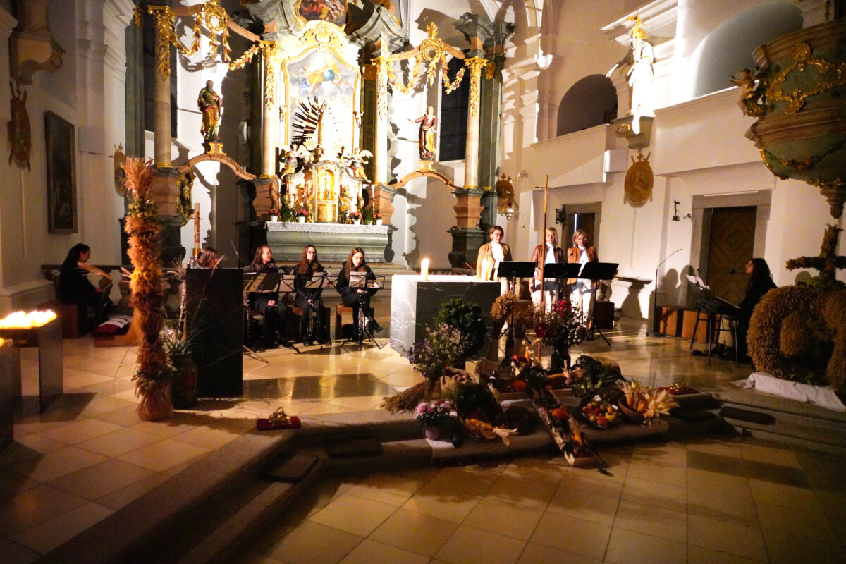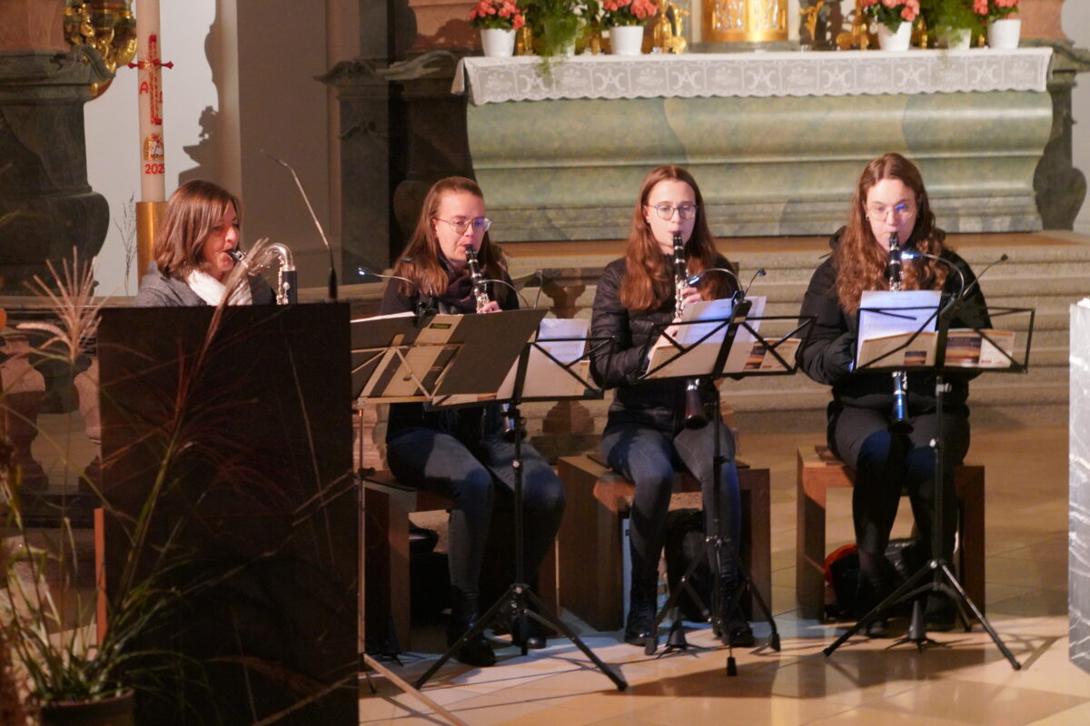 TriAngel überzeugte sowohl a cappella als auch mit instrumentaler Begleitung. Ihr Repertoire spannte einen weiten Bogen von traditionellen über lateinische bis hin zu modernen Stücken – präzise intoniert und stimmungsvoll interpretiert. Gemeinsam mit den Instrumentalisten meisterten sie anspruchsvolle Werke wie „Maria, vergiss mein nicht“, das „Ave Maria“ von Zoltán Kodály, „Dona pacem, Domine“, „Obra mai fu“ sowie „Weit, weit, weg“ – allesamt mit beeindruckender Ausdruckskraft dargeboten.