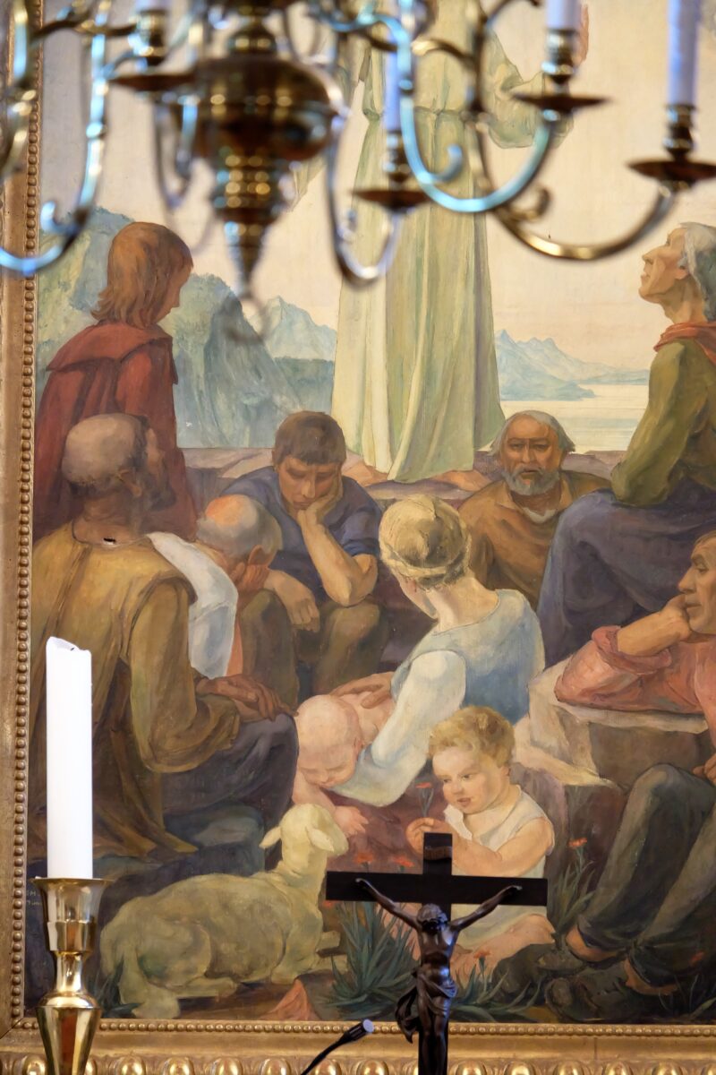 Auf dem Altarbild des Künstlers Carl Max Schultheiß aus Nürnberg, sollen die damaligen Kirchenvorstände Riebl, Weidner, Beutner und Wölfinger abgebildet sein. Auffällig ist bei dem Bild auch, dass es wohl ursprünglich größer war, als passend. Denn die gemalten Personen sind teils nur zur Hälfte zu sehen, oder sehr nah am Rand platziert.