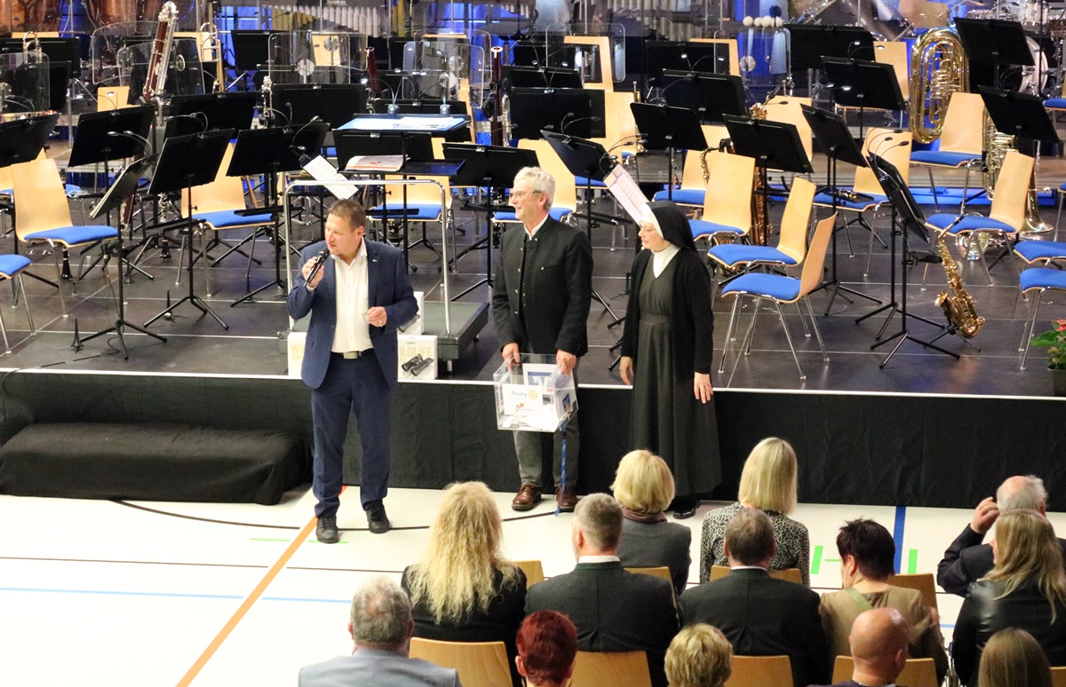 Während der Pause ging die große Verlosung sprichwörtlich über die Bühne. Jede Eintrittskarte nahm automatisch daran teil. Zu gewinnen gab es fünf hochwertige Ferngläser, jeweils im Wert von rund 800 €. Als Losfee fungierte in gekonnter Weise Schwester Lioba von den Auerbach Realschulschwestern.