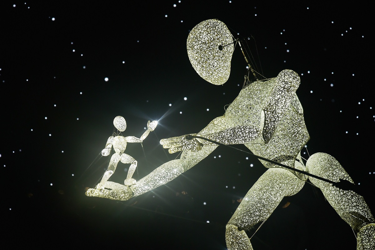 Aus der Familie DUNDU, einem Künstlerprojekt aus Stuttgart, das schon in vielen Ländern weltweit erfolgreiche Auftritte feierte, kommen die beiden hochmodernen, leuchtenden Riesenpuppen Vektor und seine Tochter Mia nach Pilsen, die auf ihrer Reise aus der fernen Zukunft quer durch die Galaxie am 8. März ausgerechnet in Pilsen landen.