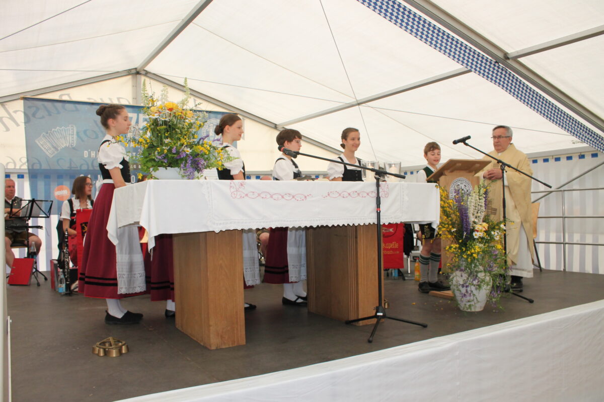 Im Namen von Landkreis und Gemeinde gratulierten Landrat Andreas Meier und zweiter Bürgermeister Josef Marzi den „Haidnaabtalern“ zum Jubiläum und unterstrichen die Wichtigkeit von Traditionsbewusstsein, Zusammenhalt, Identität, Verantwortung und Toleranz in einer bewegten Zeit. „Ihr lebt diese bleibenden Werte vor, ihr gebt jungen Menschen Wurzeln, und das ist wichtiger denn je“, hielt Marzi fest. In seiner Predigt zum Festgottesdienst im voll besetzten Festzelt, dem ein rund 200 Meter langer Festzug vorausging und der von der Eschenbacher Stadtkapelle begleitet wurde, schlug auch Pfarrer Eduard Kroher eine Brücke von der Vereinsgründung zur Gegenwart: Vor 75 Jahren, nach Jahren von Verheerung und Zusammenbruch, habe der auf Traditionspflege gerichtete Verein als Halt gebendes Element fungiert. Diese Rolle könne er auch in einer Gegenwart spielen, in der sich auf neue Unsicherheit, Unruhe und Kriegsangst breitmachten.