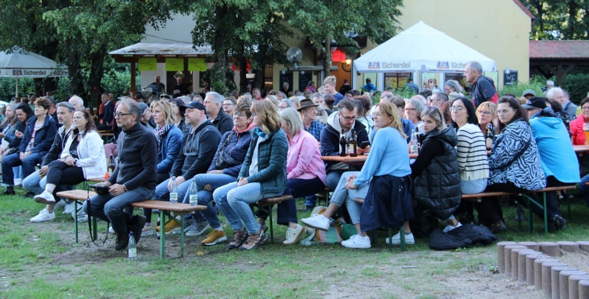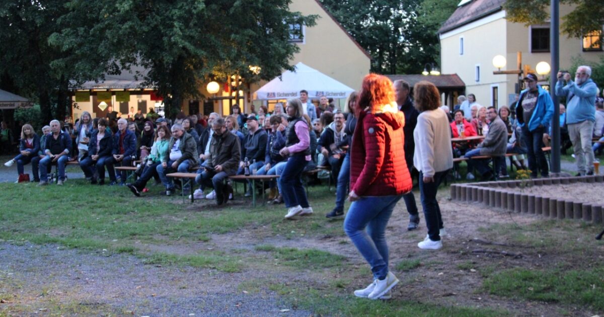 Dritter Bürgermeister Heribert Schubert zeigte sich bei der Begrüßung froh, die Zuhörer nach Tagen mit Regen und frischen Temperaturen ausnahmsweise mal wieder bei Sonnenschein „in einer der schönsten Locations der Oberpfalz“ begrüßen zu dürfen. Gut 300 Besucher genossen dann auch das Ambiente in der Freizeitanlage, Gegrilltes und kühle Getränke sowie die abwechslungsreiche Musik, die die Protagonisten auf der Bühne gut zwei Stunden lang zum Besten gaben.