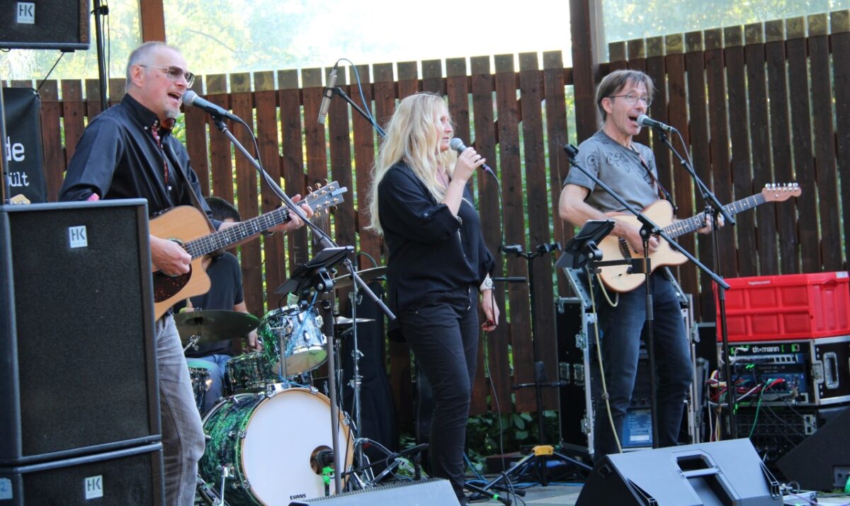 Auch wenn sie kurzfristig wegen der Urlaubszeit zwei Umbesetzungen vornehmen mussten, überzeugten Armin „Alu“ Karwath (Gitarre, Gesang), Leon Karwath (Bass), Andreas Demleitner (Gitarre, Gesang) sowie die ehemaligen Bandmitglieder Matthias Schulz (Schlagzeug) und Sängerin Kerstin Schandri von Beginn an. Ihr Repertoire reichte von den österreichischen Liedermachern Reinhard Fendrich („Strada del Sole“) und Wolfgang Ambros („Es lebe der Zentralfriedhof“) bis zu „Hotel California“ von den Eagles oder „Wish you were here“ von Pink Floyd. Dabei coverten sie nicht einfach, sondern drückten den Stücken ihren ganz eigenen akustischen Stempel auf und überzeugten auch stimmlich.