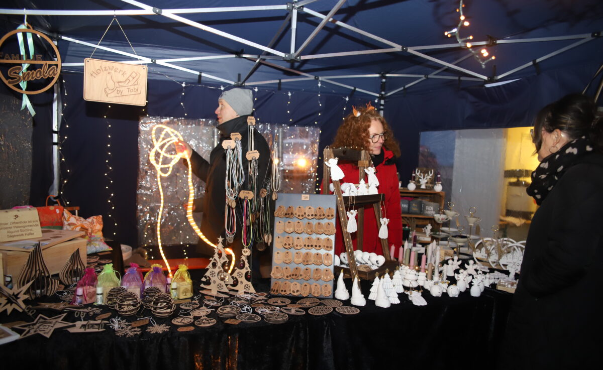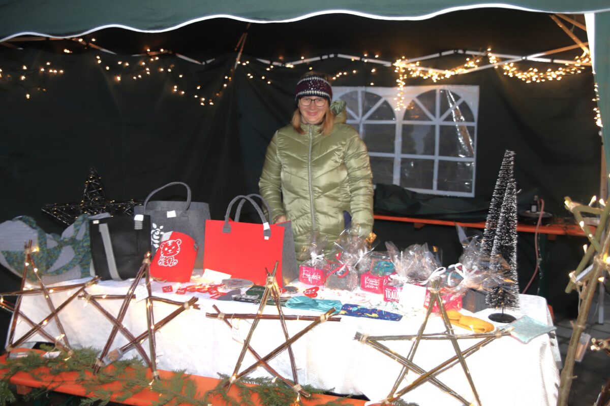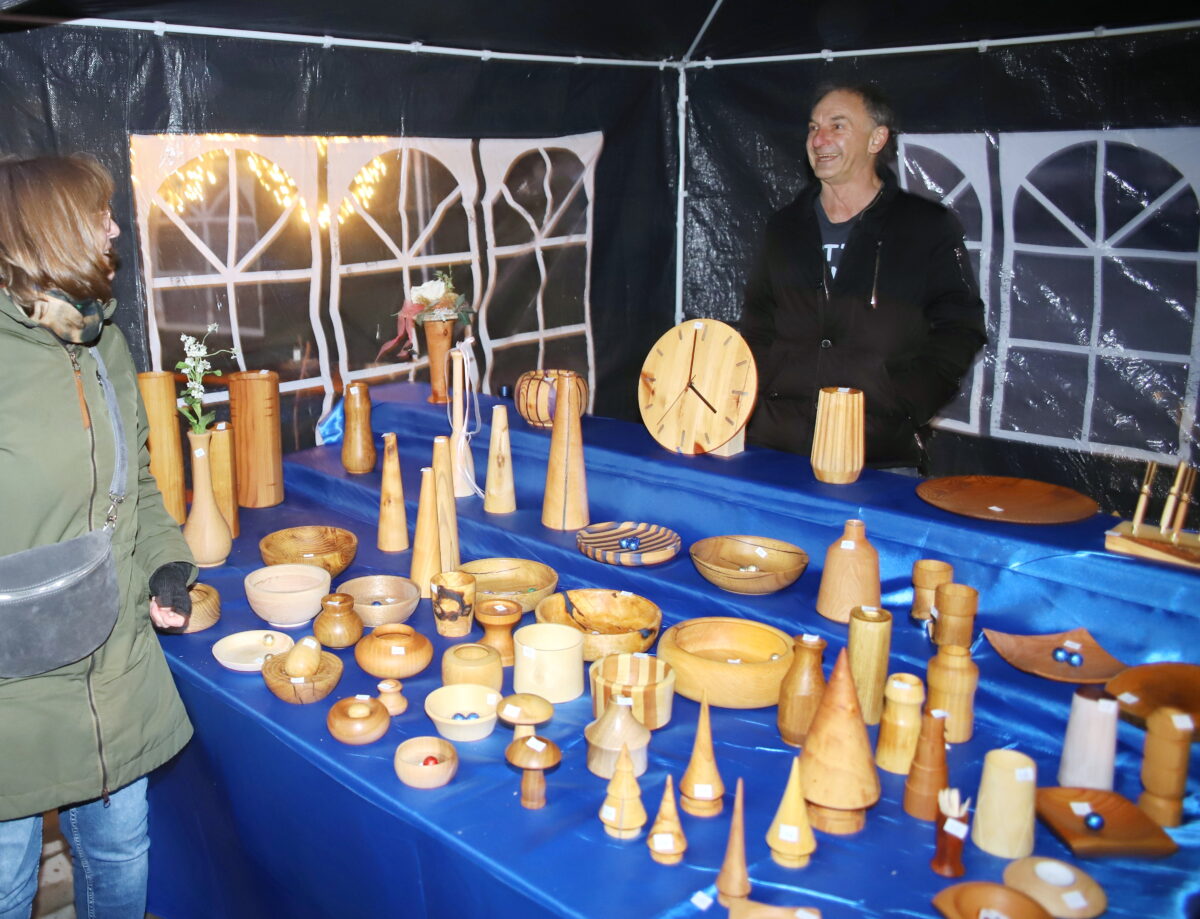 Aus dem Kreis der ausschließlich ortsansässigen Hobbykunst-Aussteller äußerte sich Liane Heinze, die bei den Vorauflagen bereits präsent war, auf diese positive Weise: „Meine Geschäfte liefen sehr gut. Es war alte ebenso wie neue Kundschaft vertreten. Am meisten gefragt waren meine selbstgenähten Filzeinkaufskörbe und die vielen Verschiedenen aus Gips gegossenen Engel.“ Beim Drechsler und Holzspezialisten Sigi Walczok waren die begehrten Artikel am Abend ebenso restlos abverkauft. „Ehrlich gesagt, lief bei mir der Verkauf etwas zäh. Am Schluss haben aber dann noch einige ein Last-Minute-Geschenk mitgenommen“, war Susanne Özates final auch durchaus zufrieden. Im Bratwurststand schwitzten Uli Danzer und Tobi Paulus. Sie verarbeiteten einige 100 Verkaufseinheiten über ihren Grill.
