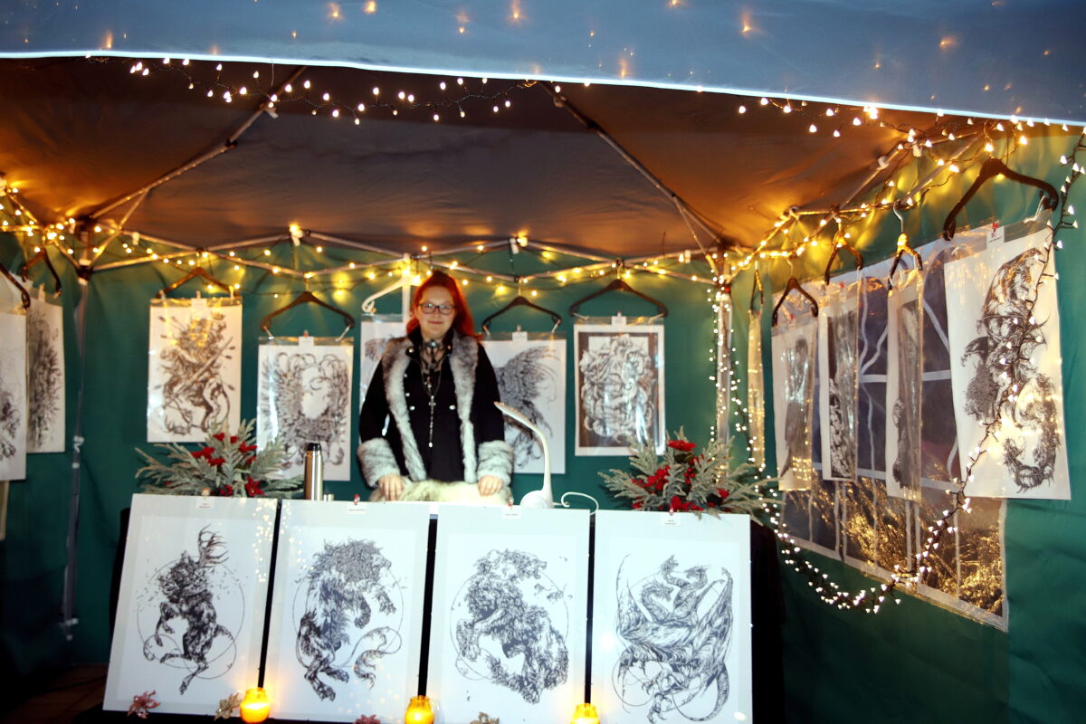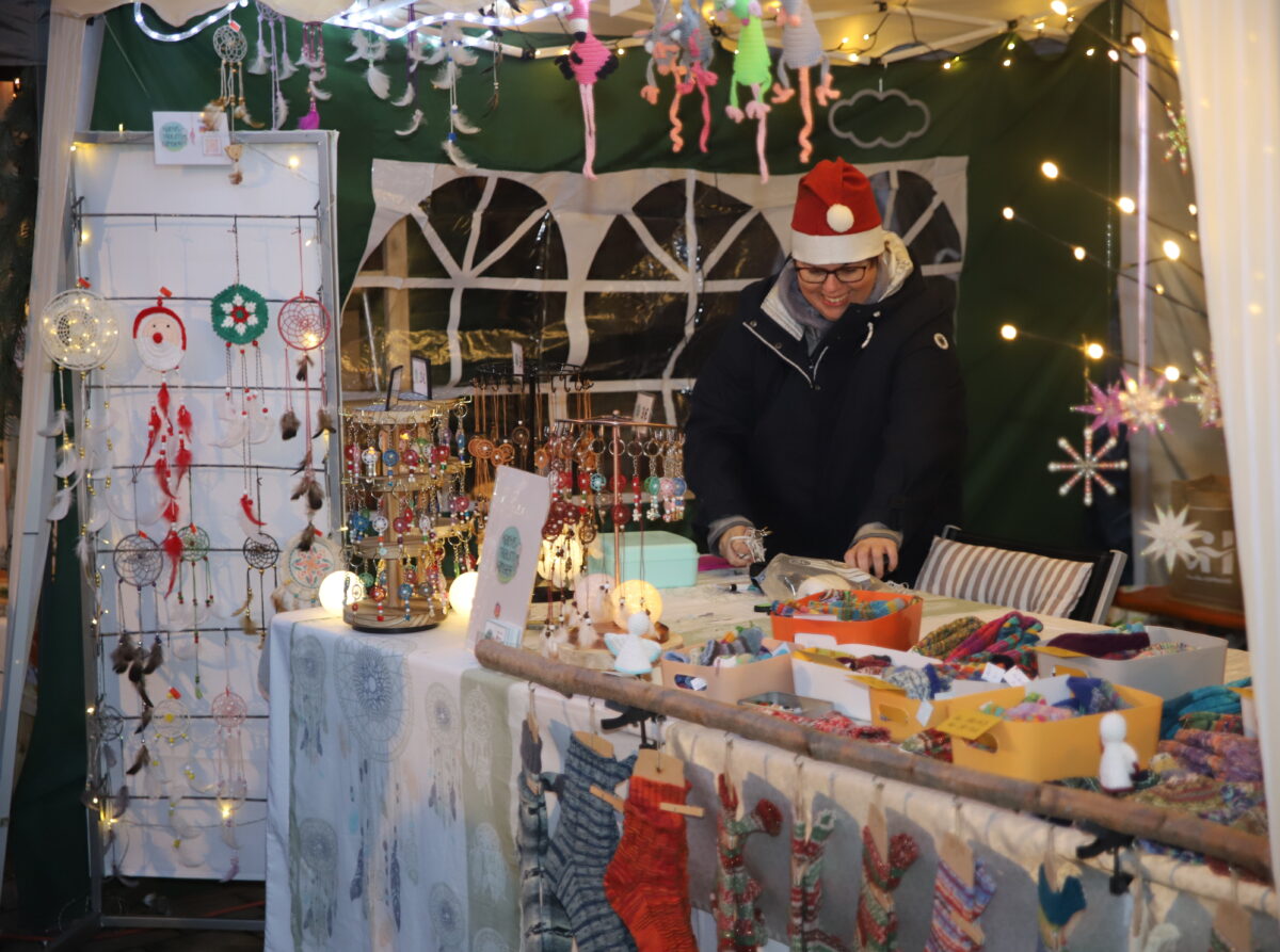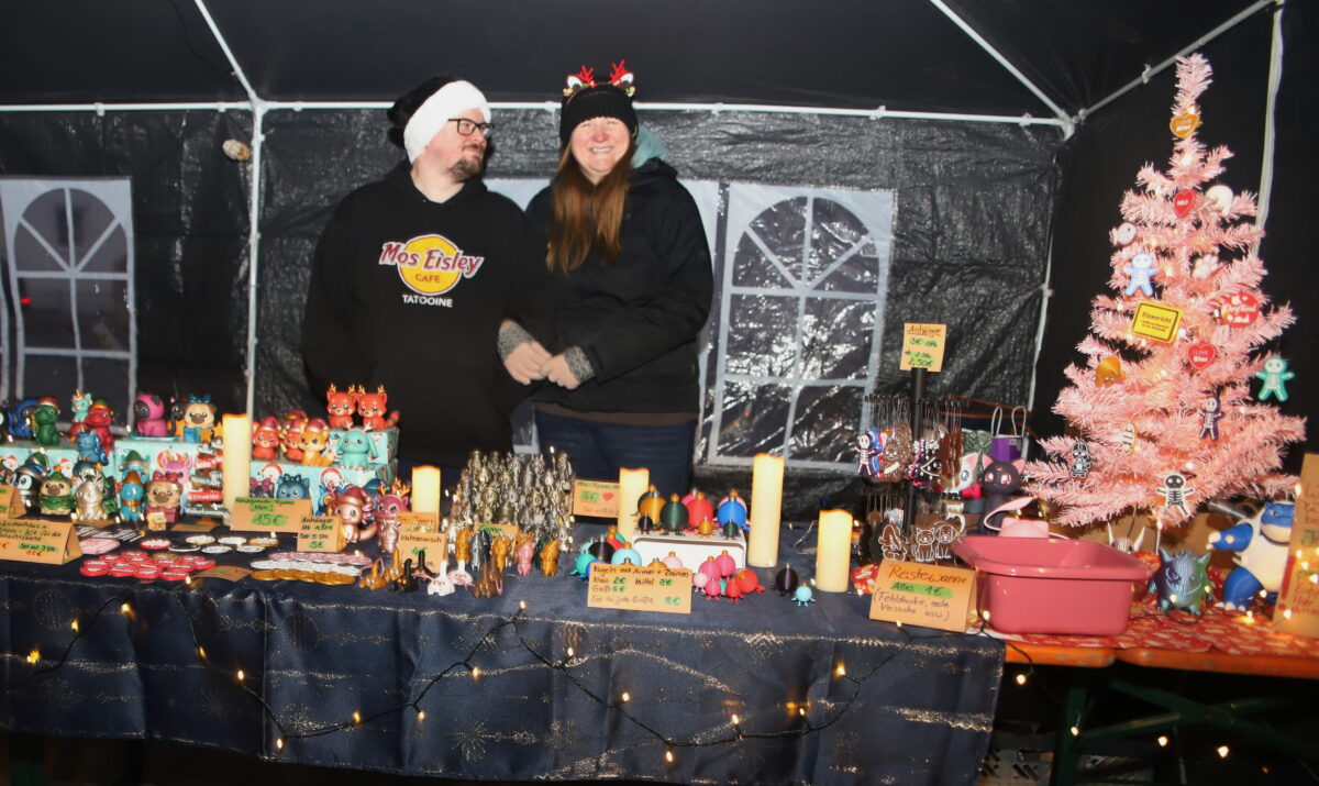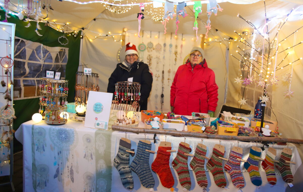 Aus dem Kreis der ausschließlich ortsansässigen Hobbykunst-Aussteller äußerte sich Liane Heinze, die bei den Vorauflagen bereits präsent war, auf diese positive Weise: „Meine Geschäfte liefen sehr gut. Es war alte ebenso wie neue Kundschaft vertreten. Am meisten gefragt waren meine selbstgenähten Filzeinkaufskörbe und die vielen Verschiedenen aus Gips gegossenen Engel.“ Beim Drechsler und Holzspezialisten Sigi Walczok waren die begehrten Artikel am Abend ebenso restlos abverkauft. „Ehrlich gesagt, lief bei mir der Verkauf etwas zäh. Am Schluss haben aber dann noch einige ein Last-Minute-Geschenk mitgenommen“, war Susanne Özates final auch durchaus zufrieden. Im Bratwurststand schwitzten Uli Danzer und Tobi Paulus. Sie verarbeiteten einige 100 Verkaufseinheiten über ihren Grill.