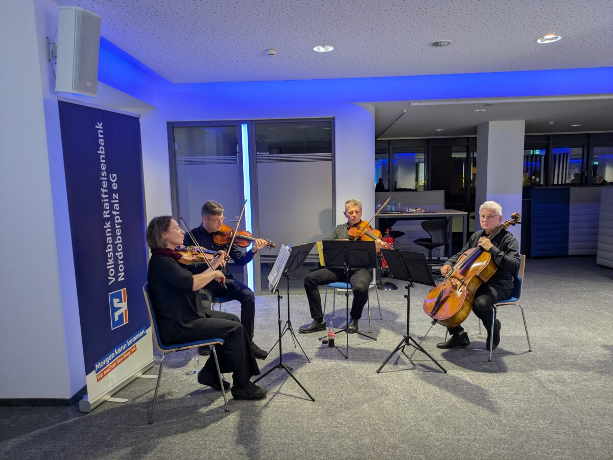 Die Vorstände Bernhard Wolf und Thomas Ludwig bedankten sich herzlich bei Petra Vorsatz, Gerda Moser und den Künstlerinnen und Künstlern für ihre geleistete Arbeit und luden zum vorbereiteten Imbiss mit Getränken ein. Untermalt wurde der gesamte Abend vom Weidener Streichquartett.