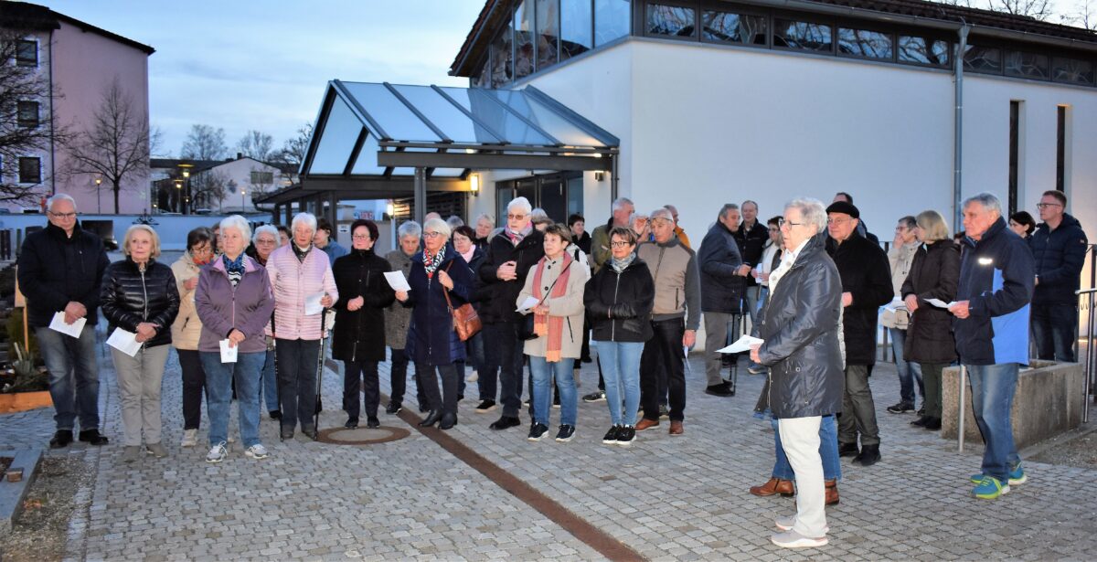 Pfarrer Daniel Fenk begrüßte sehr viele Gläubige an der ersten Station bei der Ursula-Kirche am Friedhof, die den Ökumenischen Kreuzweg mitgehen wollten. Zusammen mit dem Pfarrer hat der Arbeitskreis “Ökumene” den symbolhaften Kreuzweg vorbereitet.