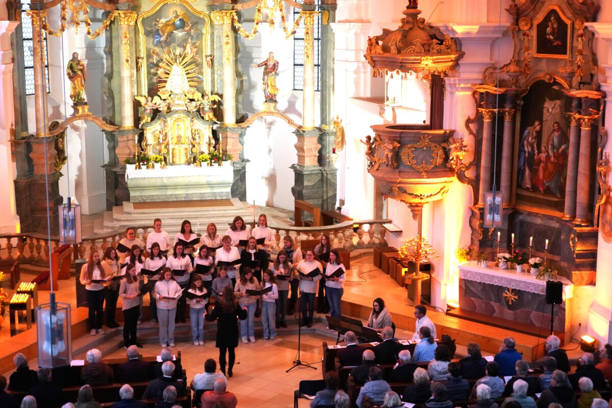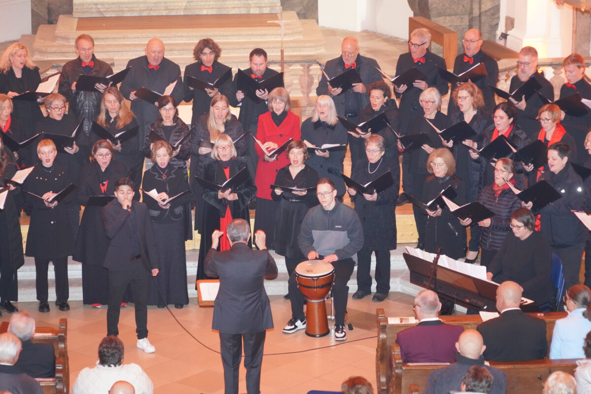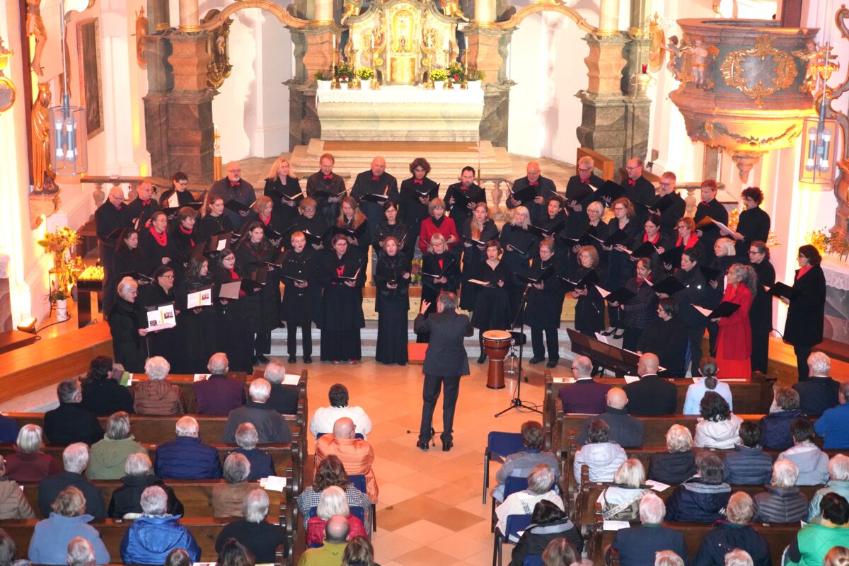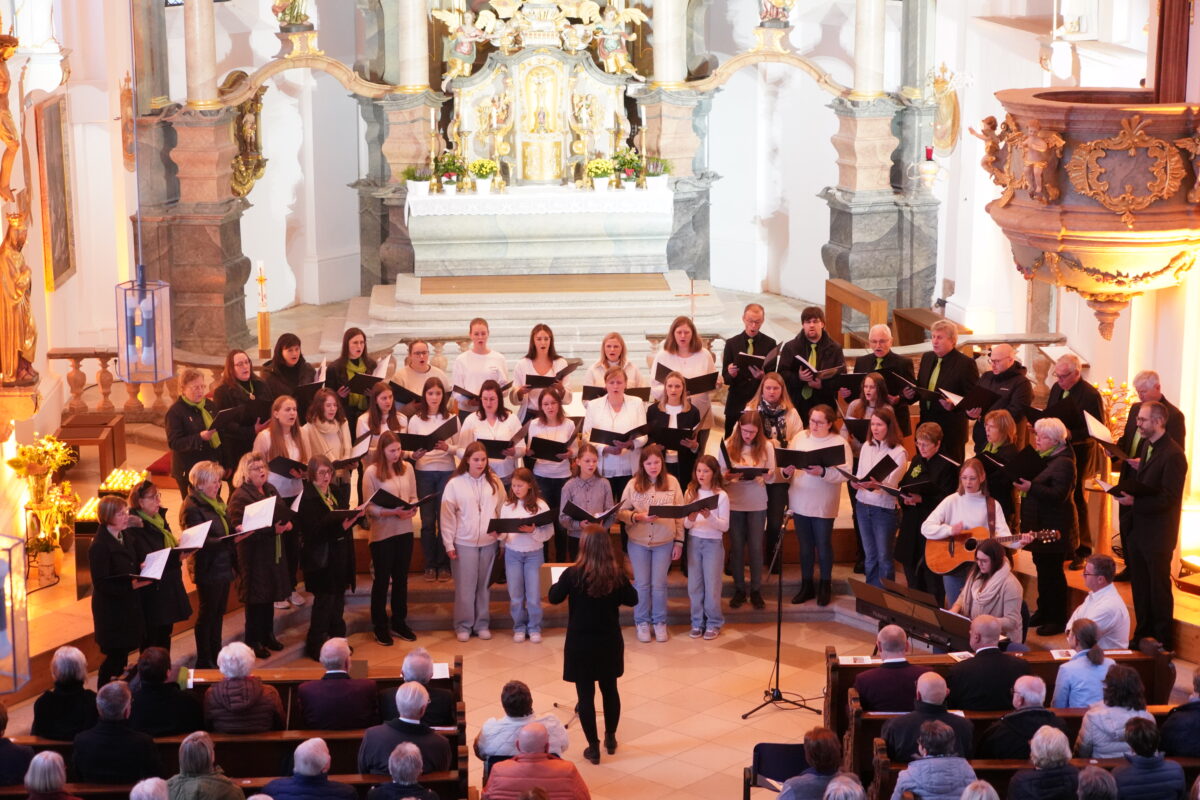 Den krönenden Abschluss bildete der gemeinsame Kanon „Dona nobis Pacem“, bei dem die rund 200 Sängerinnen und Sänger gemeinsam die Kirche mit ihren Stimmen erfüllten. Der Altarraum konnte die Sängerinnen und Sänger kaum fassen und das Publikum bedankte sich mit stehenden Ovationen für diesen Konzertabend, der die Kraft des Chorgesangs auf eindrucksvolle Weise unter Beweis stellte.