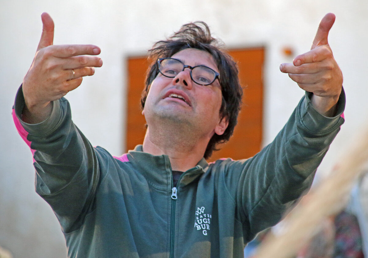 Der Regisseur kommt wieder angerauscht von seinem Beobachtungspunkt, wo am Freitag die Zuschauer sitzen werden. „Gerne auch mal nach hinten sprechen“, appelliert er an den Fredi-Sucher. „Bei euch geht es ein wenig schnell durcheinander – gerne ein bisschen mehr rausgehen, ein bisschen breiter spielen.“ Rickelt als lebendiges Role Model. Die Augen weit aufgerissen, der ganze Körper ist im Einsatz.
