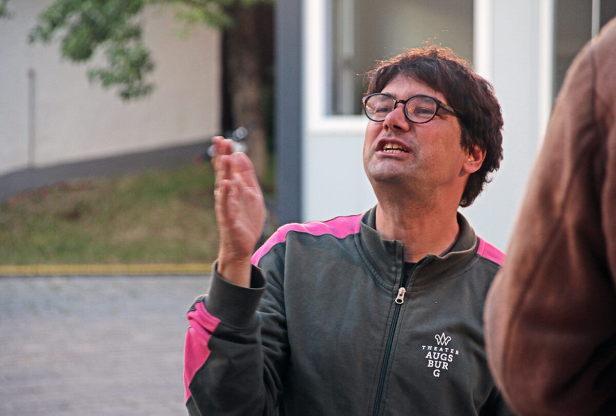Da muss der Meister wieder eingreifen: „Nicht sofort alle loslabern“, befürchtet er, dass in der Geräuschkulisse der Multilog untergeht. „Erst mal hören: ,Was ist da jetzt schon wieder los?‘ Dann reagieren: ,Ah, der scho wieder‘!“