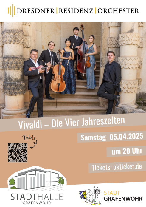 Am 5. April um 20 Uhr öffnet die Stadthalle in Grafenwöhr ihre Türen für ein außergewöhnliches Musikerlebnis. Das renommierte Dresdner Residenz Orchester präsentiert Antonio Vivaldis Meisterwerk “Die vier Jahreszeiten”. Einlass ist bereits um 19 Uhr.