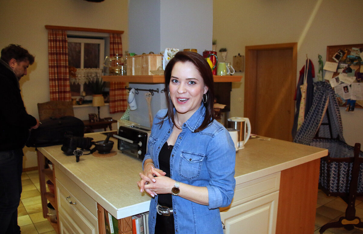Mit Bedauern nehmen wir zur Kenntnis, dass Carina ihr Oberpfälzisch ablegen und Oberbairisch lernen musste – obwohl der Bamberger ja auch weiter fränkeln darf. Was ist da los? „Ich bin ja eigentlich eingekauft worden als Oberpfälzerin“, erklärt sie die sprachliche Wandlung. „Aber als dann die ersten Drehtage waren, da haben sie so ein bisschen geschluckt, weil mich keiner verstanden hat.“ Produzent Markus Schmidt-Märkl sei auf sie zugekommen und habe gesagt: „Carina, deinen Dialekt müssen wir etwas abschärfen. Du kannst nicht Beia, Moidl, Boum, des versteht keiner.“