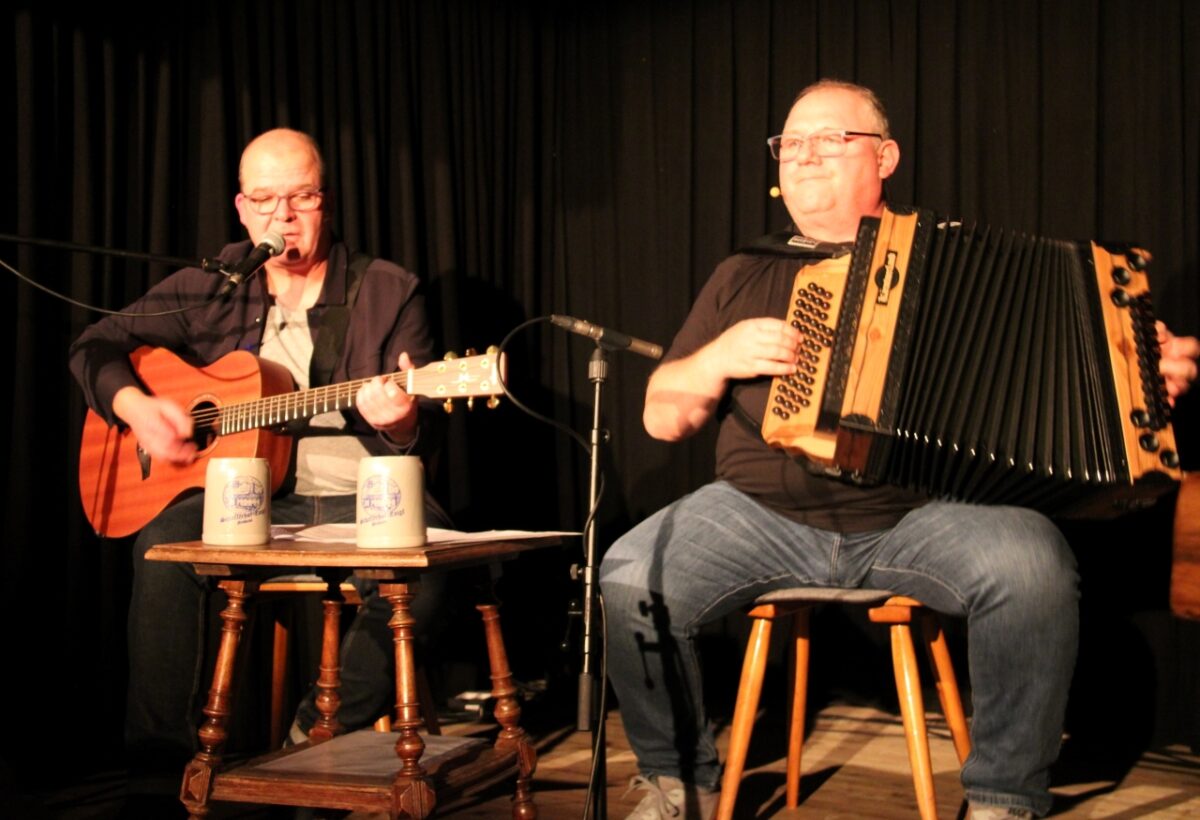 Immer passend zur jeweiligen Geschichte sorgten der Schieder Luk und Jürgen Walbert auf der Knopfharmonie und an der Gitarre für den musikalischen Background.