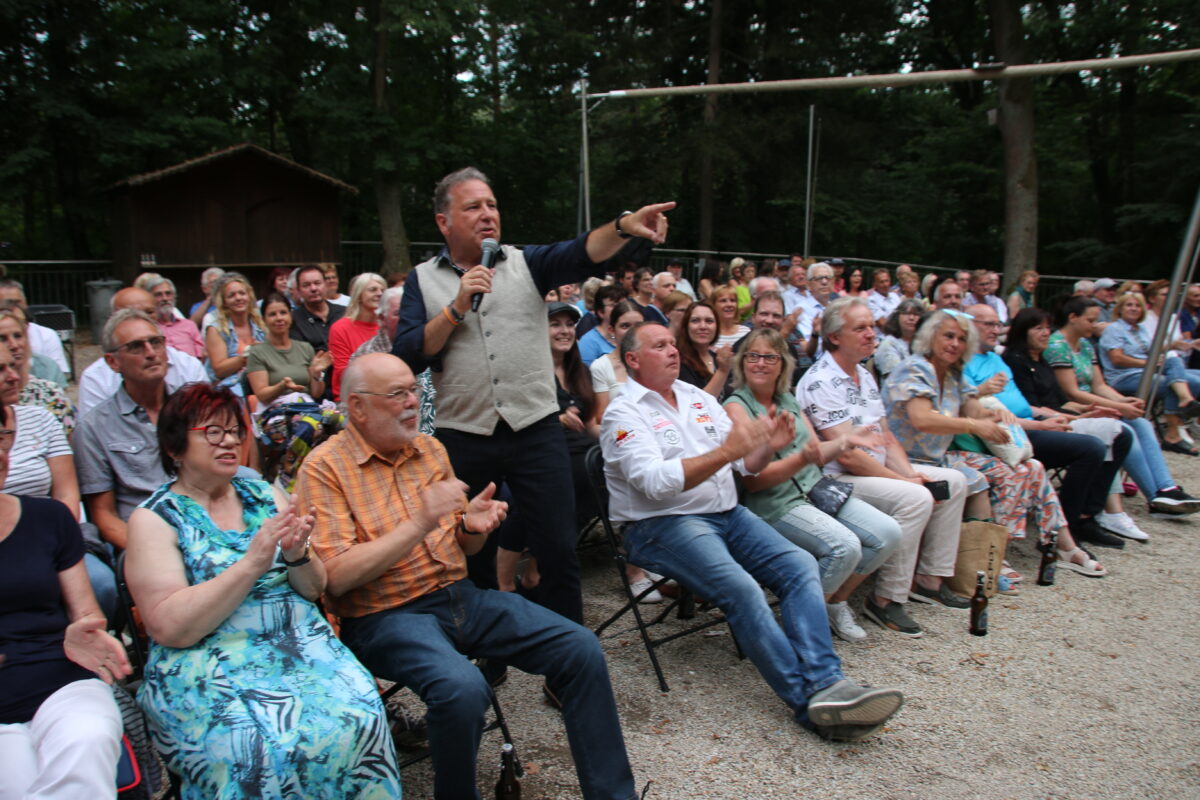 Die Lieder stammten aus der Militärzeit von Elvis, also den Jahren 1958 bis 1960. Bekannte Beispiele sind der “Jailhouse Rock”, “Love me tender” und “Don´t be cruel”. Erst in der Zugabe spielte die Band Lieder anderer Jahre. Sänger Reiner Kowalski interpretiert seit 1987 Elvis-Songs und traf genau den Ton. Er wurde schon früh durch seine Mutter zum Fan: “Elvis ist einfach Kult.” Er verkörpere die gesamte Bandbreite des Musik-Spektrums und sorgte mit seiner Show und den Glitzer-Outfits für Faszination. Begleitet wurde Kowalski von der Max-Seelos-Band.