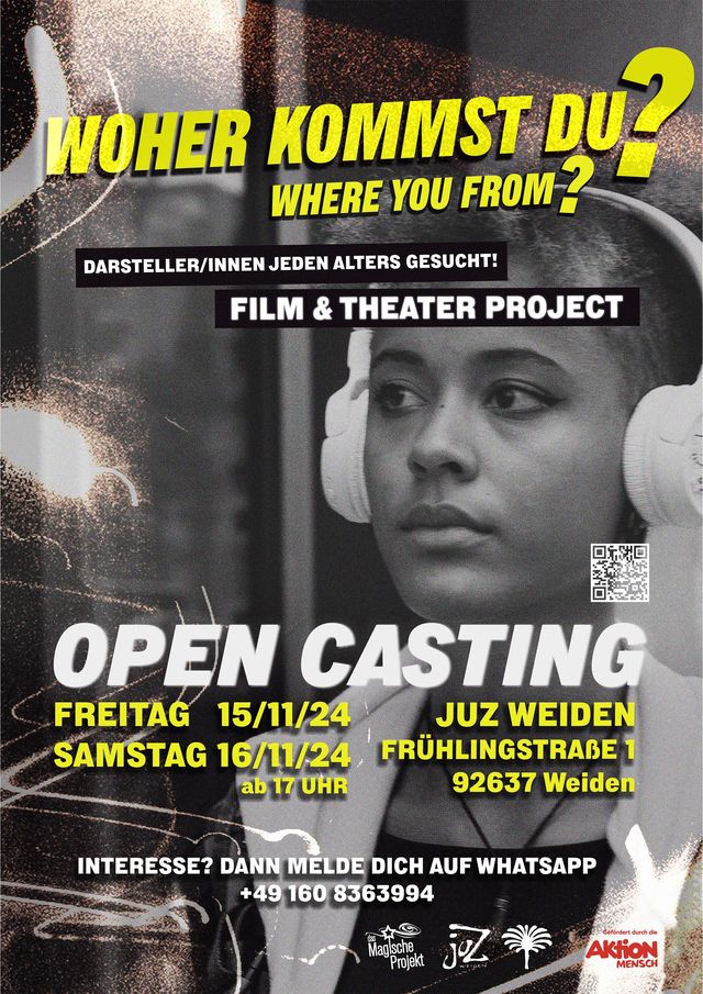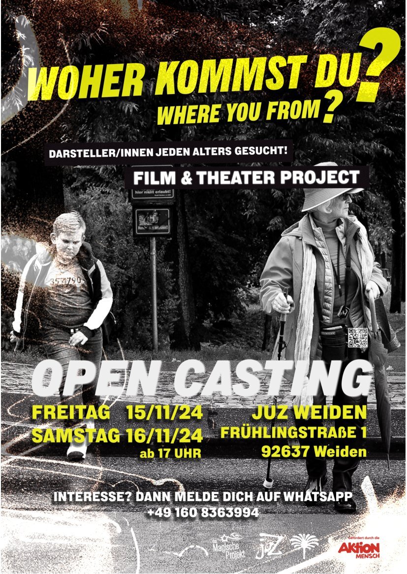 In Weiden startet ein aufsehenerregendes Projekt, das sich mit Themen beschäftigt, die viele junge Menschen bewegen, aber selten auf der großen Bühne Raum finden. Unter dem Titel “Woher kommst du?” nimmt das magische Projekt e.V. in Kooperation mit dem Jugendzentrum in Weiden eine kreative Auseinandersetzung mit sozialer Ungleichheit in Angriff. Ein Theater- und Filmprojekt von und für Jugendliche aus Weiden und der Umgebung.