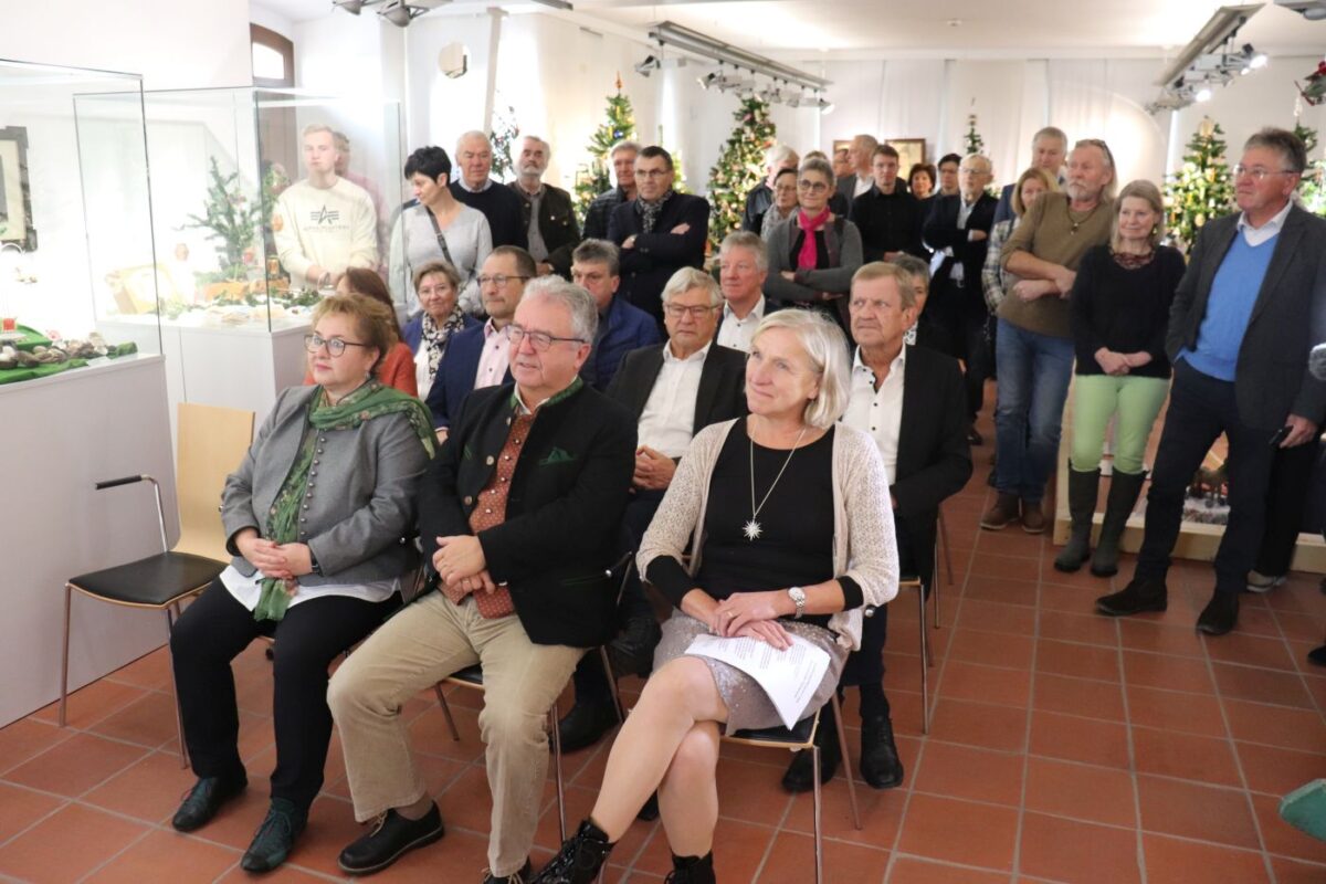 Die Eröffnung wurde musikalisch von Luisa Bäuml und Julia Gleißner von der Kreismusikschule begleitet. Neben den prächtig geschmückten Weihnachtsbäumen umfasst die Ausstellung auch Puppenhäuser, Kaufläden, Puppenwagen, Schlitten oder Schaukelpferde. Unter einem Weihnachtsbaum befindet sich sogar ein ganzer Zoo. Ein besonderes Highlight sind die verzierten und verspielten Christbaumständer, die in der Ausstellung besondere Aufmerksamkeit erhalten.